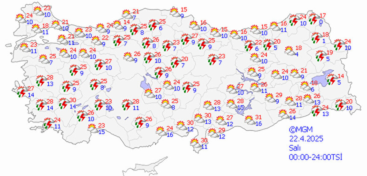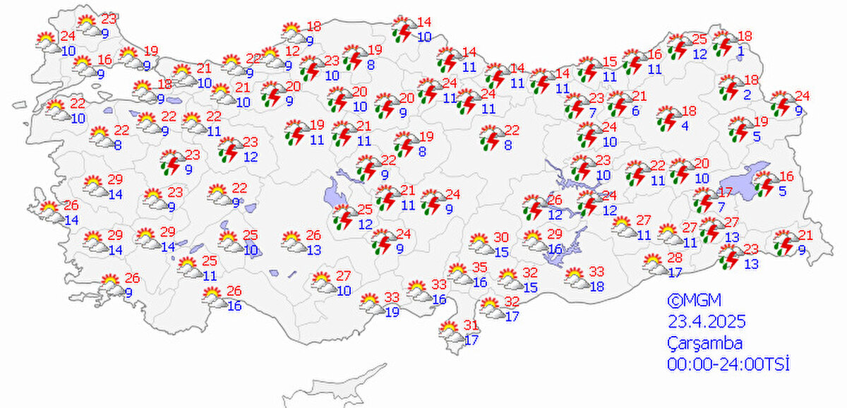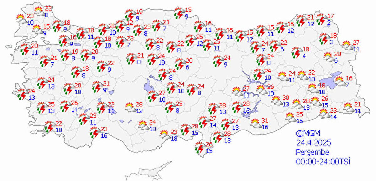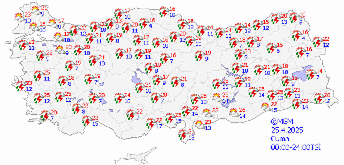 Meteoroloji Genel Müdürlüğüne göre yurdun tamamında çarşamba gününden itibaren gök gürültülü sağanak bekleniyor. Yağışların hafta sonuna kadar etkili olması öngörülüyor.