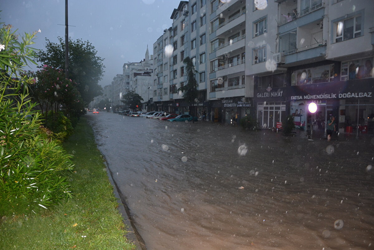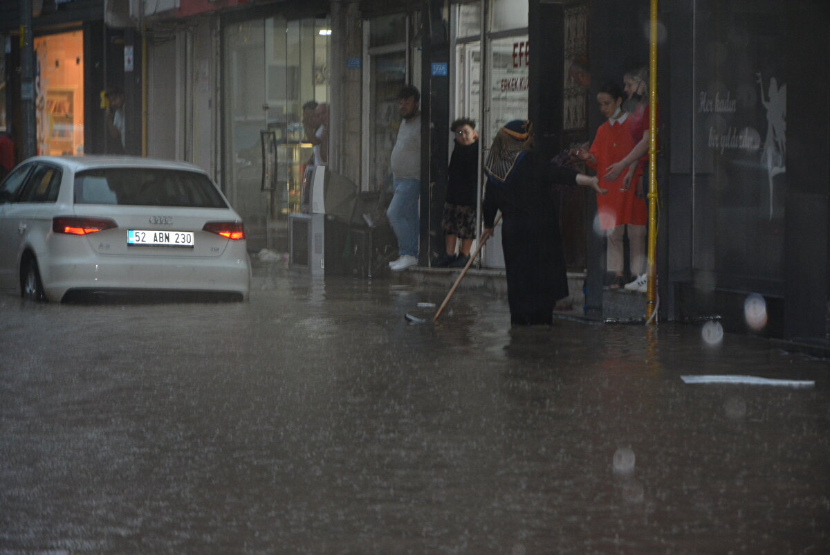 Ordu'nun Fatsa ilçesinde gün içinde aralıklarla görülen ve akşam saatlerinde etkisini arttıran sağanak hayatı olumsuz etkiledi.
