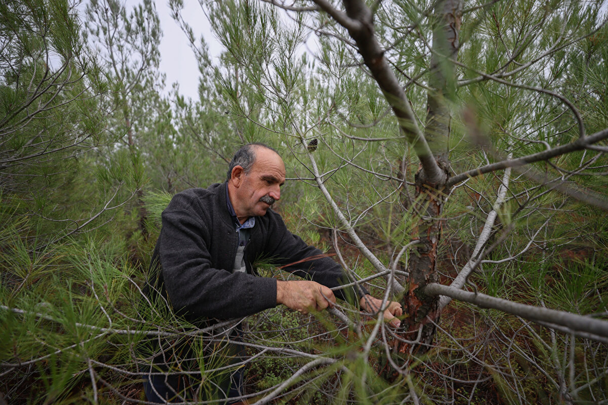 İzmir Orman Bölge Müdürlüğünde memur olarak çalışırken 2011'de emekli olan 61 yaşındaki İbrahim Dede, ormanlarda işçi olarak çalışmaya devam ediyor.