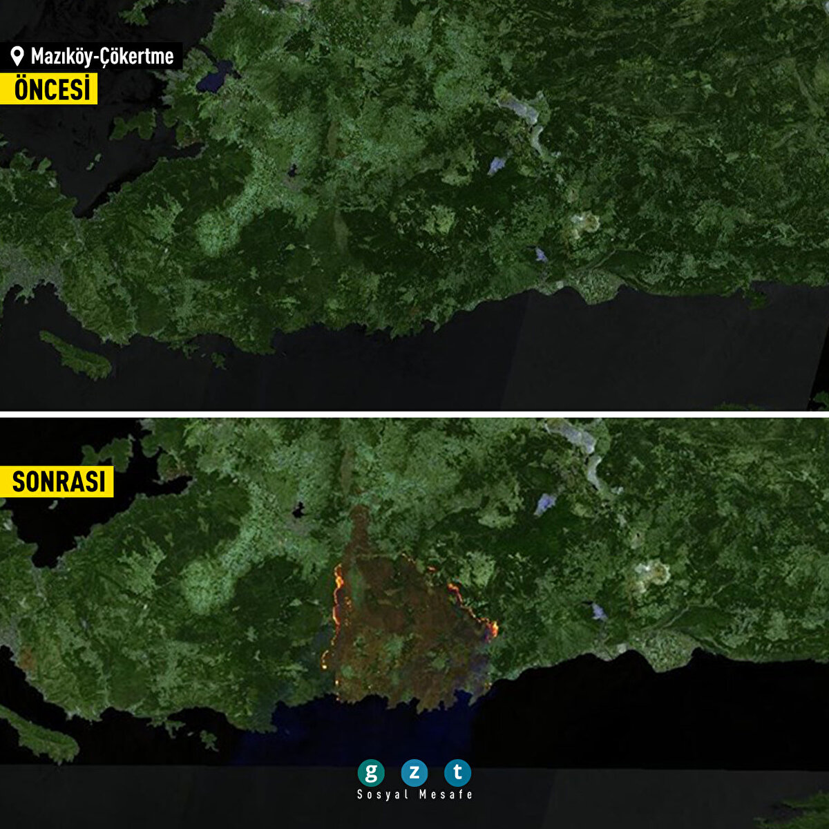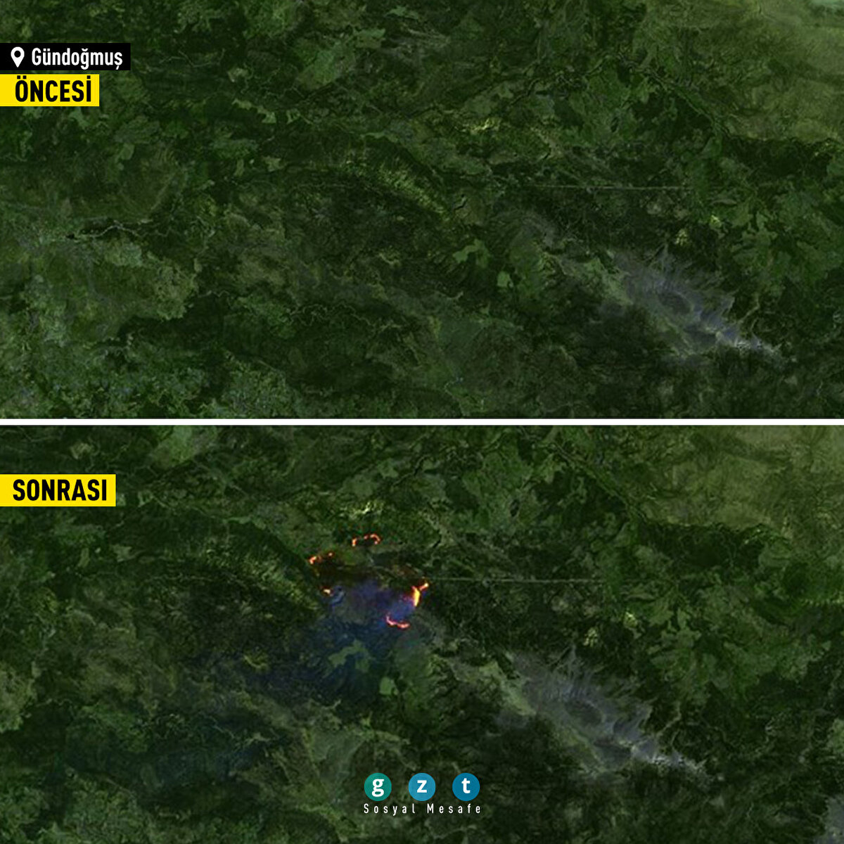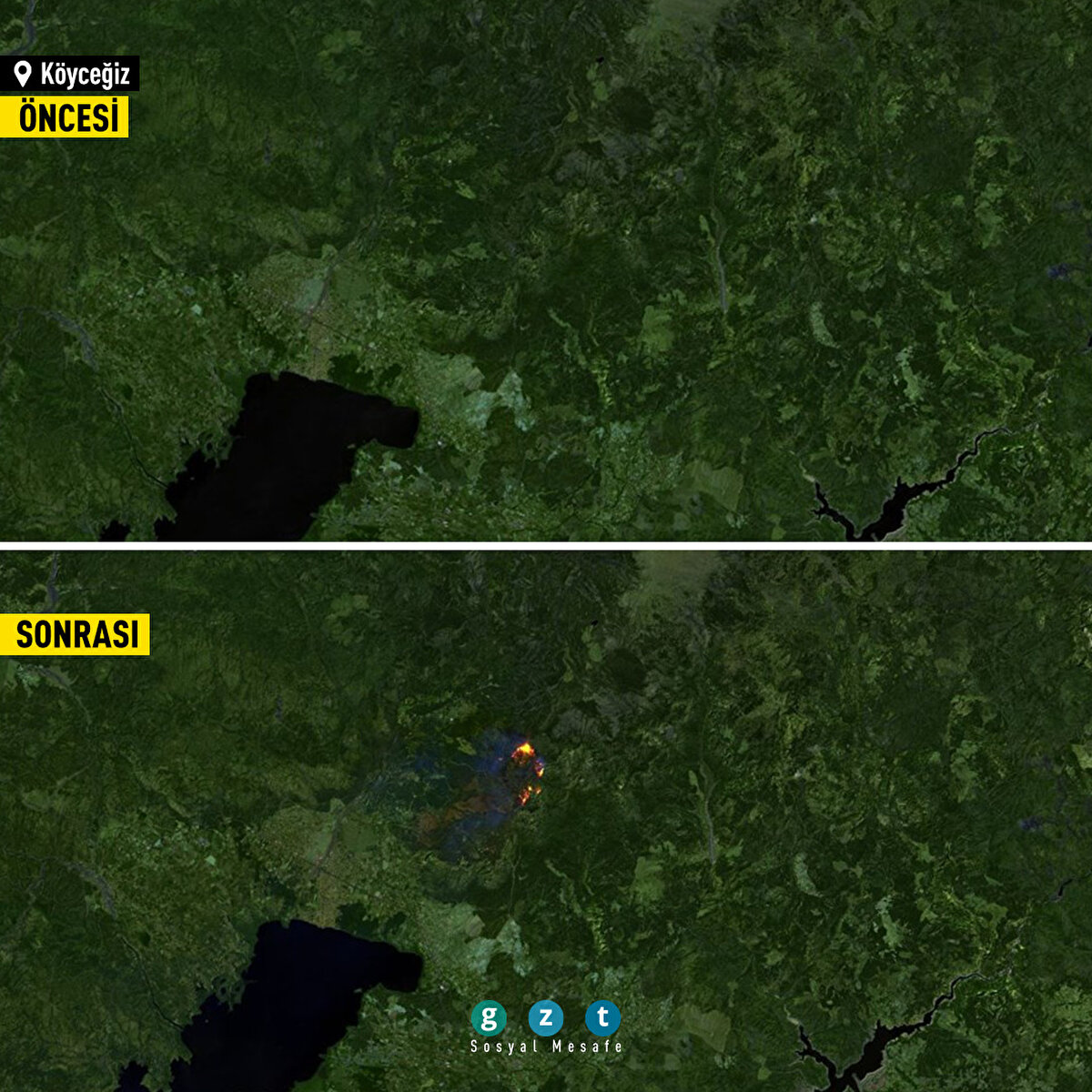 Ege ve Akdeniz'i etkisi altına alan orman yangınları günlerdir devam ediyor. Türkiye'nin orman yangınlarıyla mücadelesinde bir hafta geride kaldı. Orman Genel Müdürlüğü'nden yapılan açıklamada, "39 ilde 174 adet orman yangını meydana gelmiş olup, bu yangınların 160 adedi kontrol altına alınmıştır. 5 ilde 14 adet yangını kontrol altına alma çalışmaları devam etmektedir" denildi. Yangınlar sonrası doğadaki tahribat uyduya böyle yansıdı...