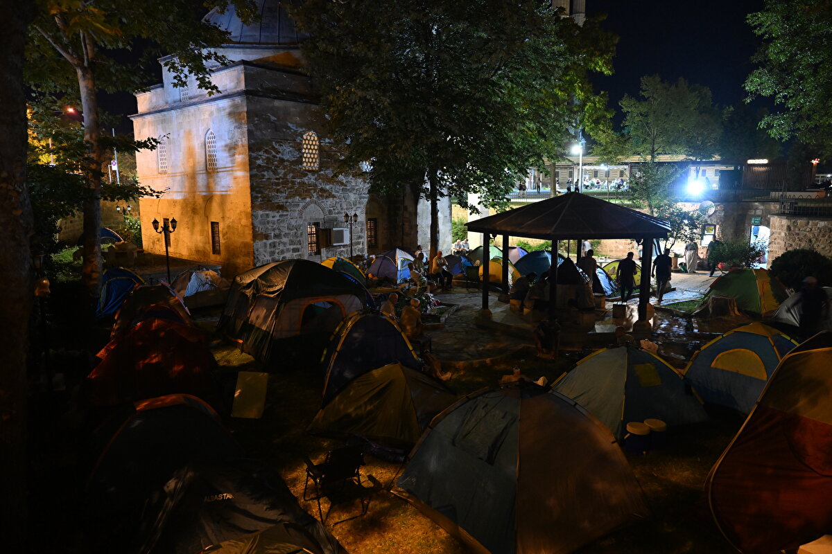 Geceden itibaren cami çevresine yerleşen bazı ziyaretçiler kurdukları çadırlarda uyurken, bazıları da serdikleri kartonların üzerinde sabahladı.