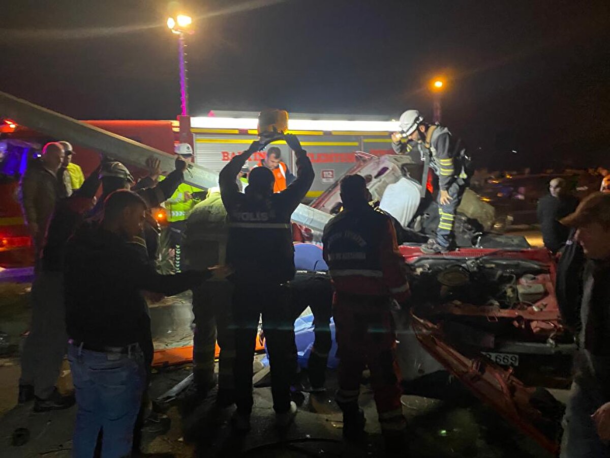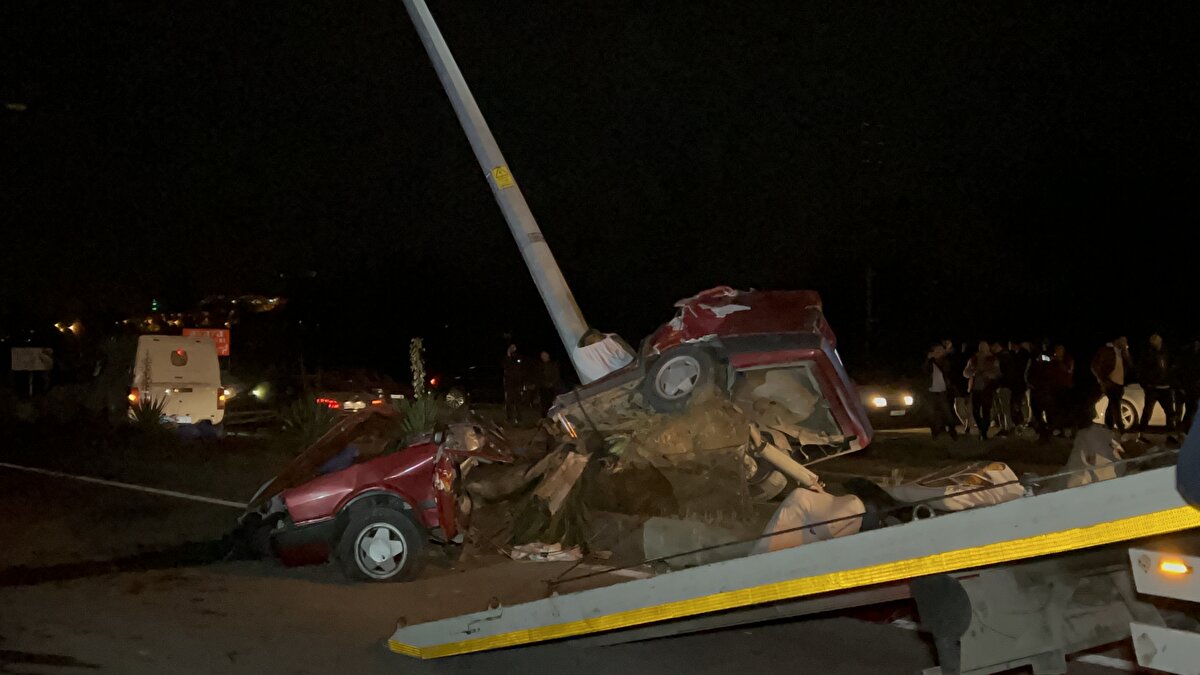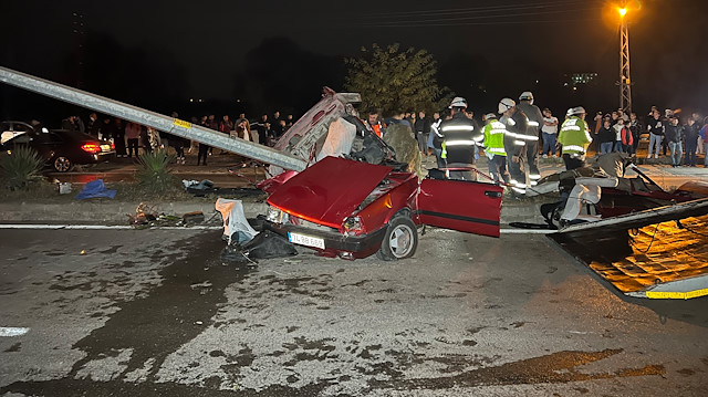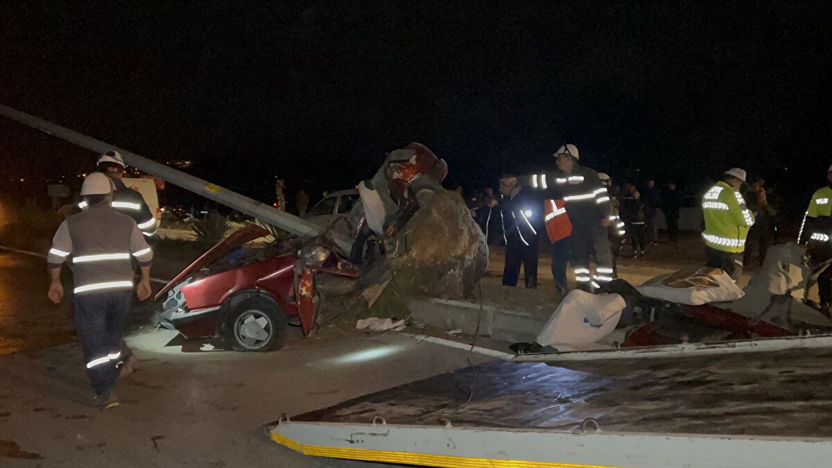 Çarpmanın şiddetiyle otomobil ortadan ikiye bölünürken, direk ise yan yattı. Kazayı görenlerin ihbarı üzerine bölgeye sağlık, itfaiye, polis ve AFAD ekipleri sevk edildi.