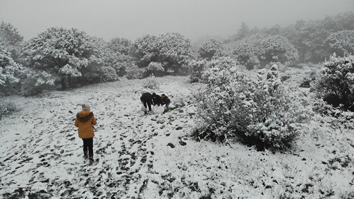 İstanbul’un yüksek kesimlerinden Aydos ormanlarında çocuklar karın yağması ile kendilerini dışarı attı.