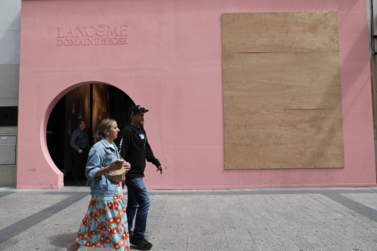 Fransa'da 17 yaşındaki Nael M. isimli gencin polis kurşunuyla öldürülmesiyle ülke geneline yayılan şiddet eylemleri sonrası Paris'in en işlek caddesi Şanzelize'de, turistlerden çok polisin kaldırımlara yerleştirdiği demir bariyerler göze çarpıyor.