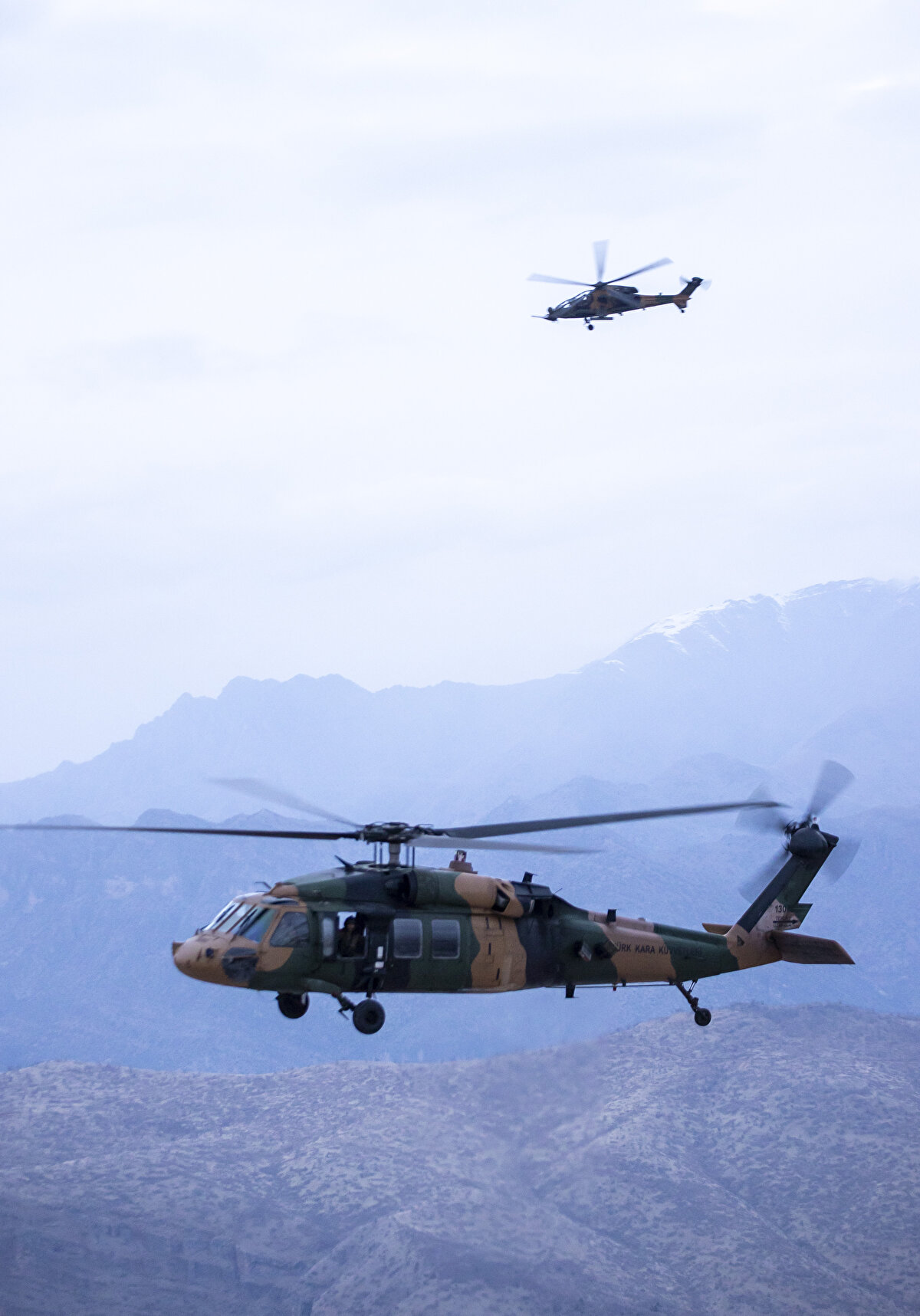Mehmetçiğin zorlu arazi ve hava şartlarına rağmen özveriyle yürüttüğü harekatta, modern keşif gözetleme sistemleriyle tespit edilen sınırı geçme çabasındaki teröristler, yerli ve milli silah sistemleriyle etkisiz hale getiriliyor.