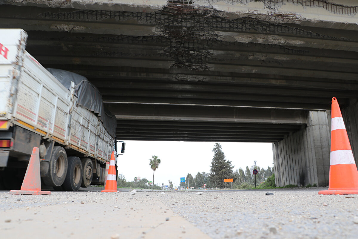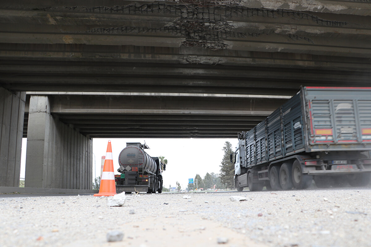 Adana-Mersin kara yolu üzerindeki Karaisalı gişeleri otoyol bağlantı köprüsü kirişlerindeki hasar dikkati çekti.
