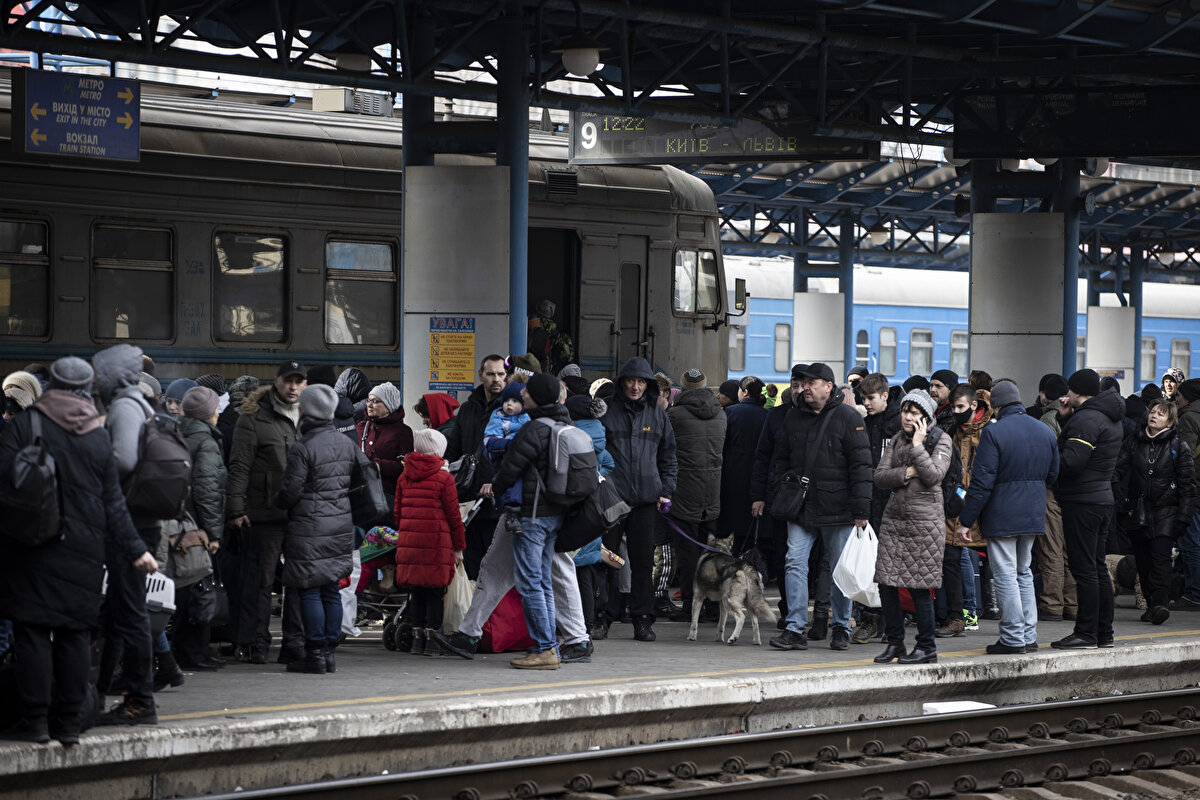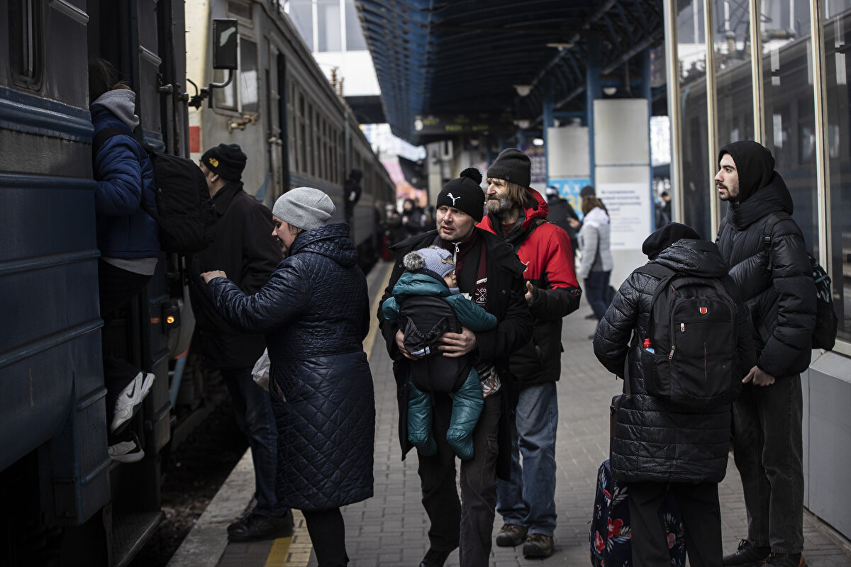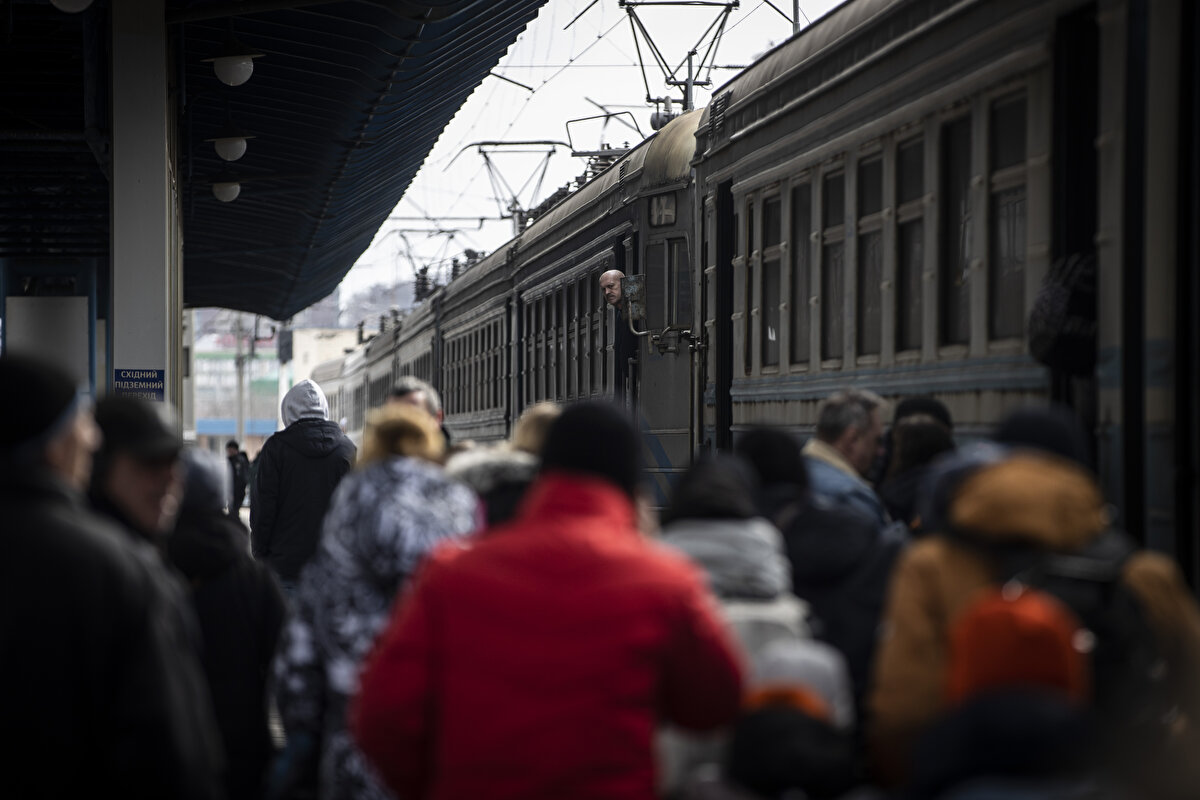 Ülkenin dört bir yanından çok sayıda insan, devam eden Rus saldırılarından kaçmak için komşu Polonya'ya giden bir trene binmeyi umdukları Lviv'e gidiyor.