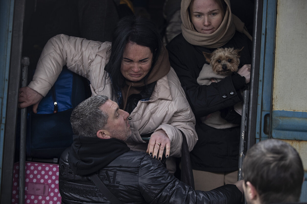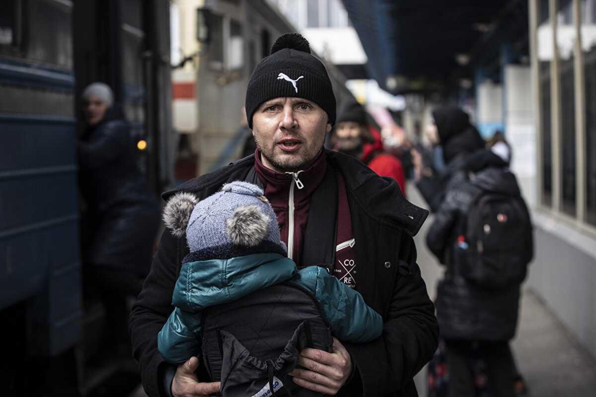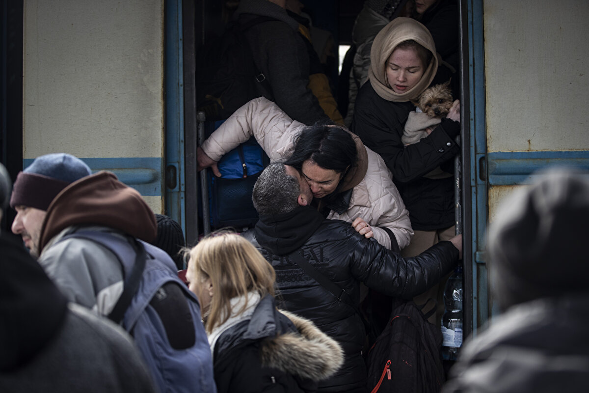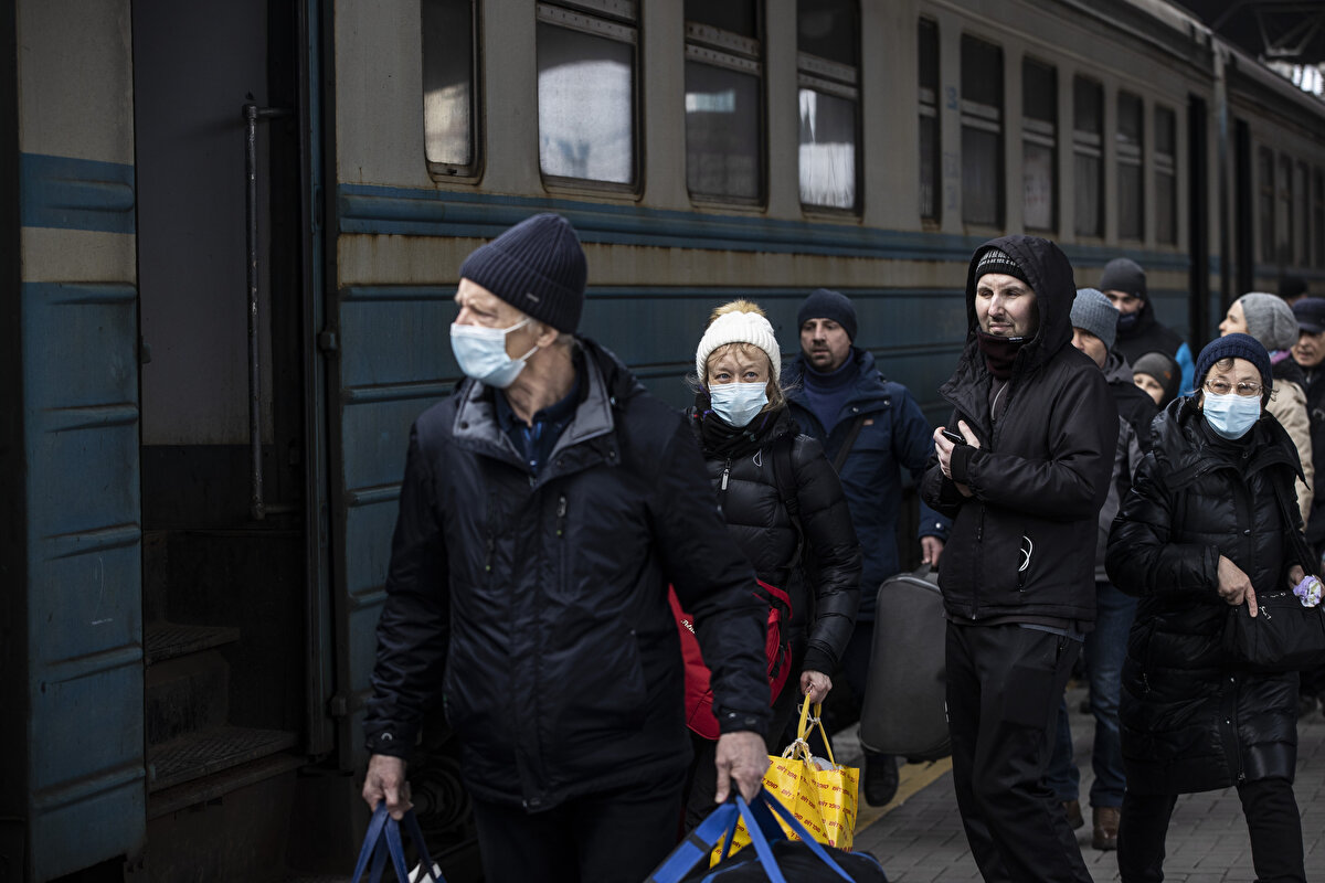 Ülkenin dört bir yanından çok sayıda insan, devam eden Rus saldırılarından kaçmak için komşu Polonya'ya giden bir trene binmeyi umdukları Lviv'e gidiyor.