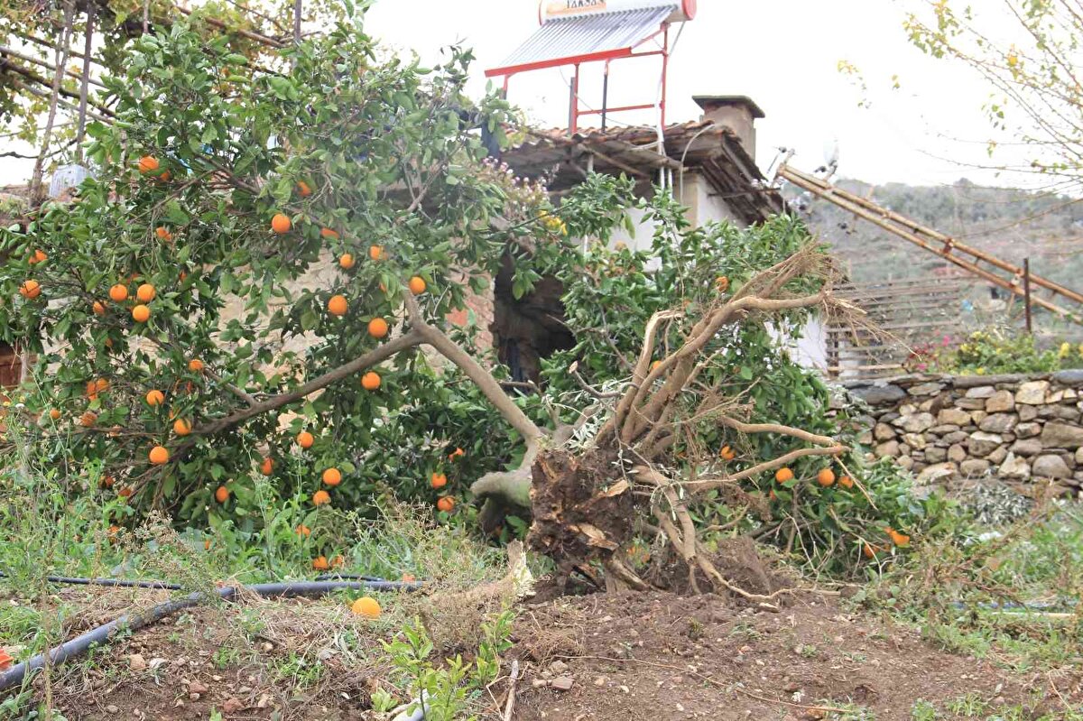 Fırtınanın ağaçları kökünden söktüğü köyde, maddi hasarın milyonlarla ifade edildiği bildirildi.