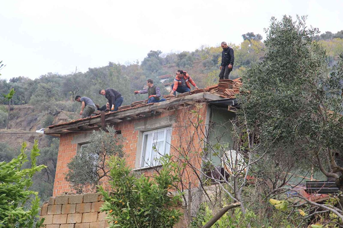 Aydın'da etkili olan yağış ve fırtına nedeniyle İncirliova ilçesine bağlı Şirindere köyünde onlarca evin çatısı uçtu, ağaçlar kökünden söküldü, direkler devrildi.