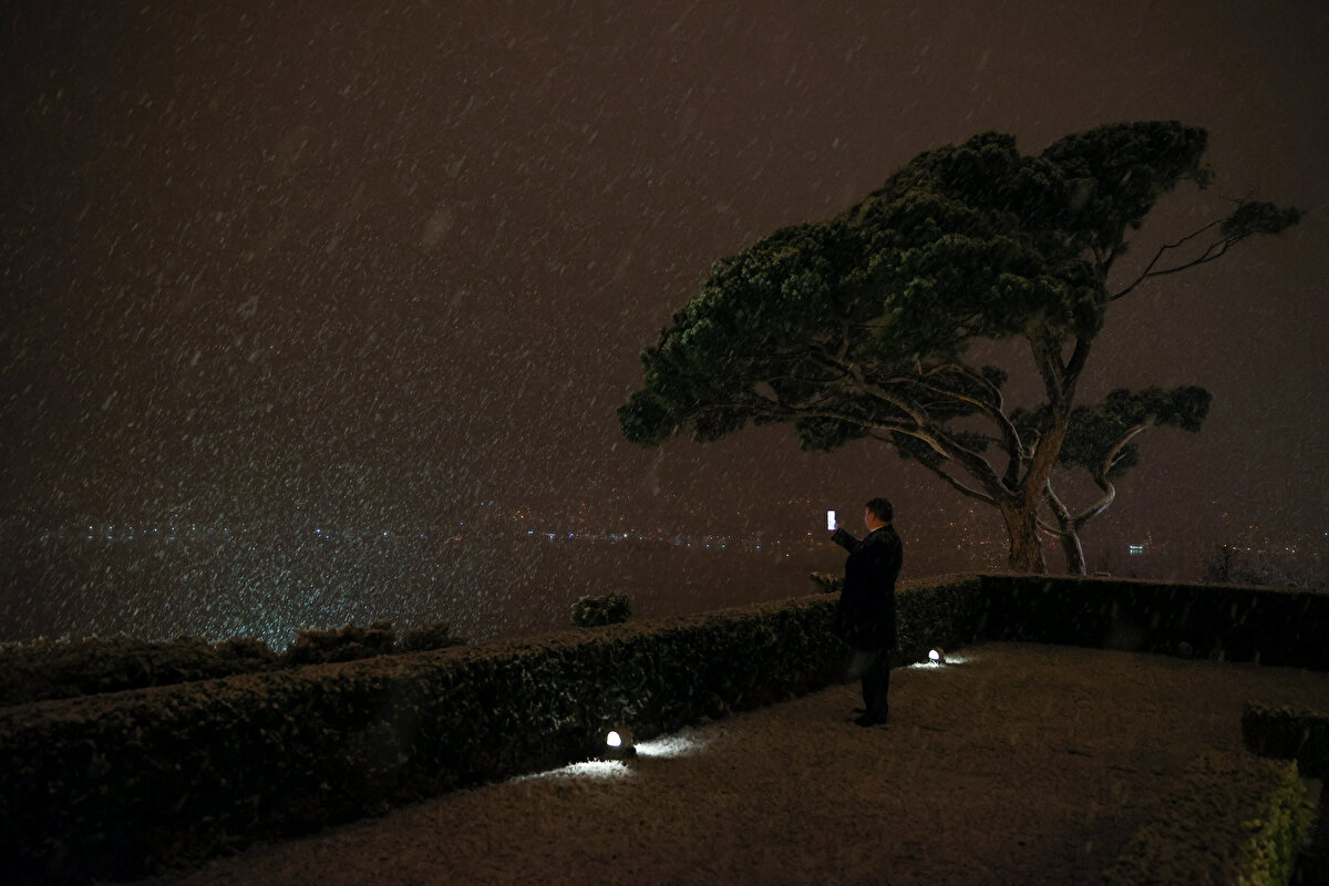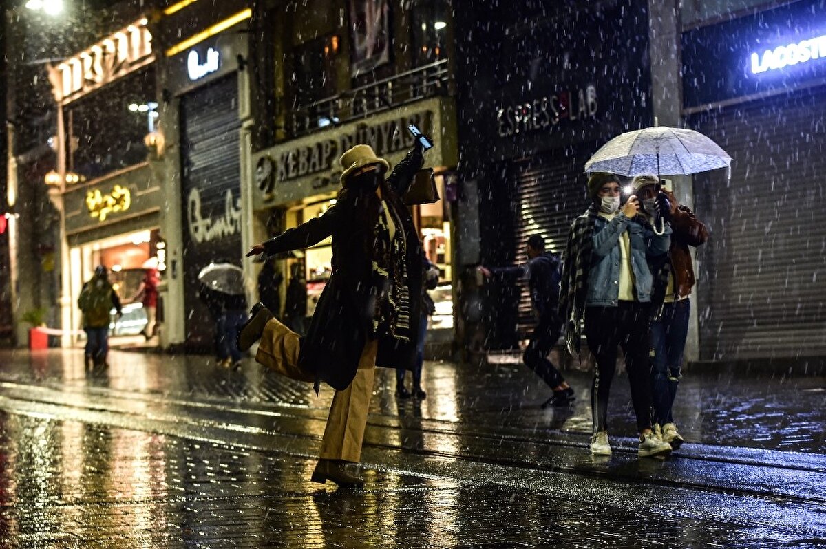 Sokağa çıkma kısıtlaması nedeniyle Taksim’de turistler kar yağışıyla birlikte renkli görüntüler oluşturdu. Öte yandan AKOM’dan İstanbul’da kar yağışının etkisinin artarak süreceğine dair uyarılar geldi.
