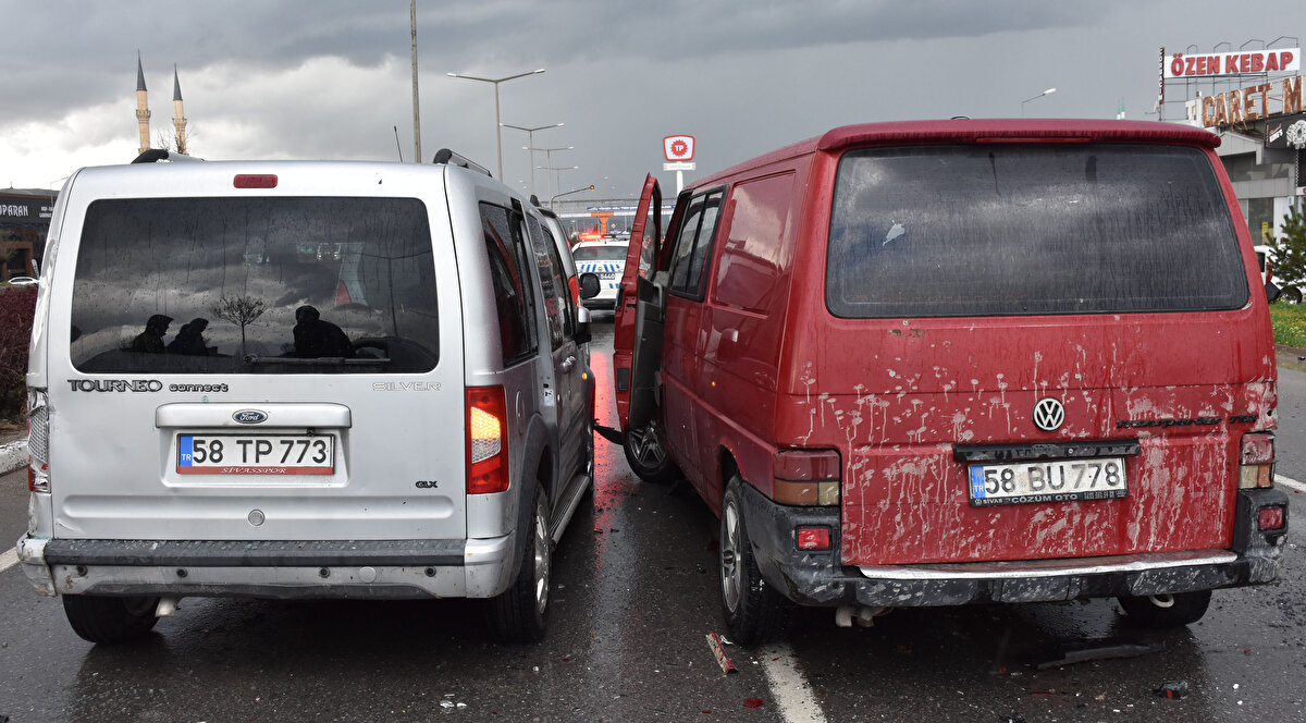 Sivas'ta etkili olan sağanak nedeniyle kayganlaşan yolda 7 araç birbirine girdi. Yaralananın olmadığı zincirleme kazada, araçlar hasar gördü.