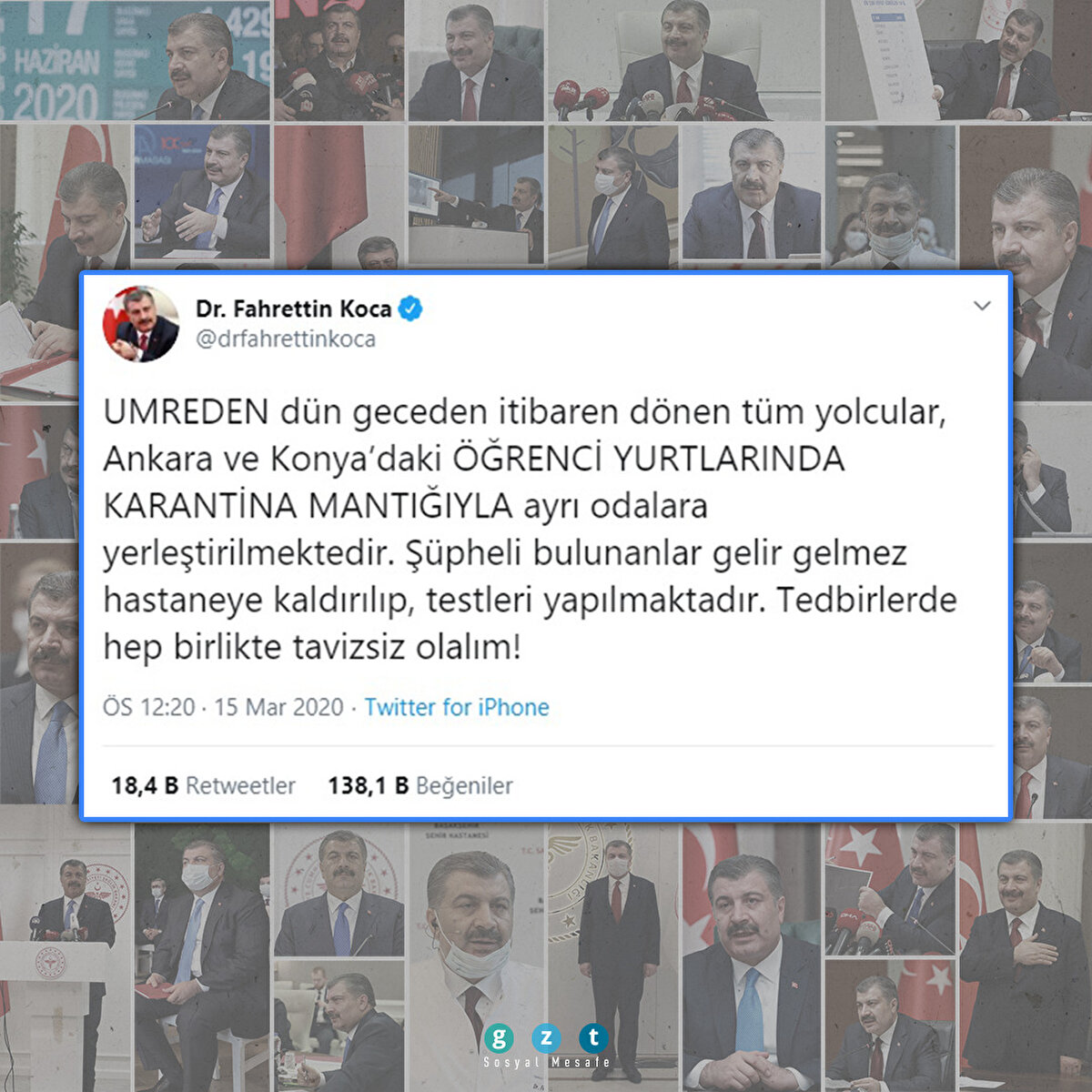 Koronavirüsle alakalı spekülasyonların önüne geçmede Bakan Koca'nın tweetleri büyük önem arz ediyordu