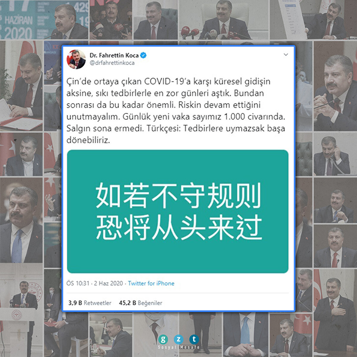 Koronavirüs Bilim Kurulu'nun 20 Ocak'ta faaliyete başlamasının hemen ardından Sağlık Bakanı Fahrettin Koca, Çin kaynaklı COVID-19'a karşı harekete geçti ve son durumu her gün sosyal medya hesabı üzerinden kamuoyu ile paylaştı. İşte Bakan Koca'nın gün gün yaptığı o paylaşımlar...