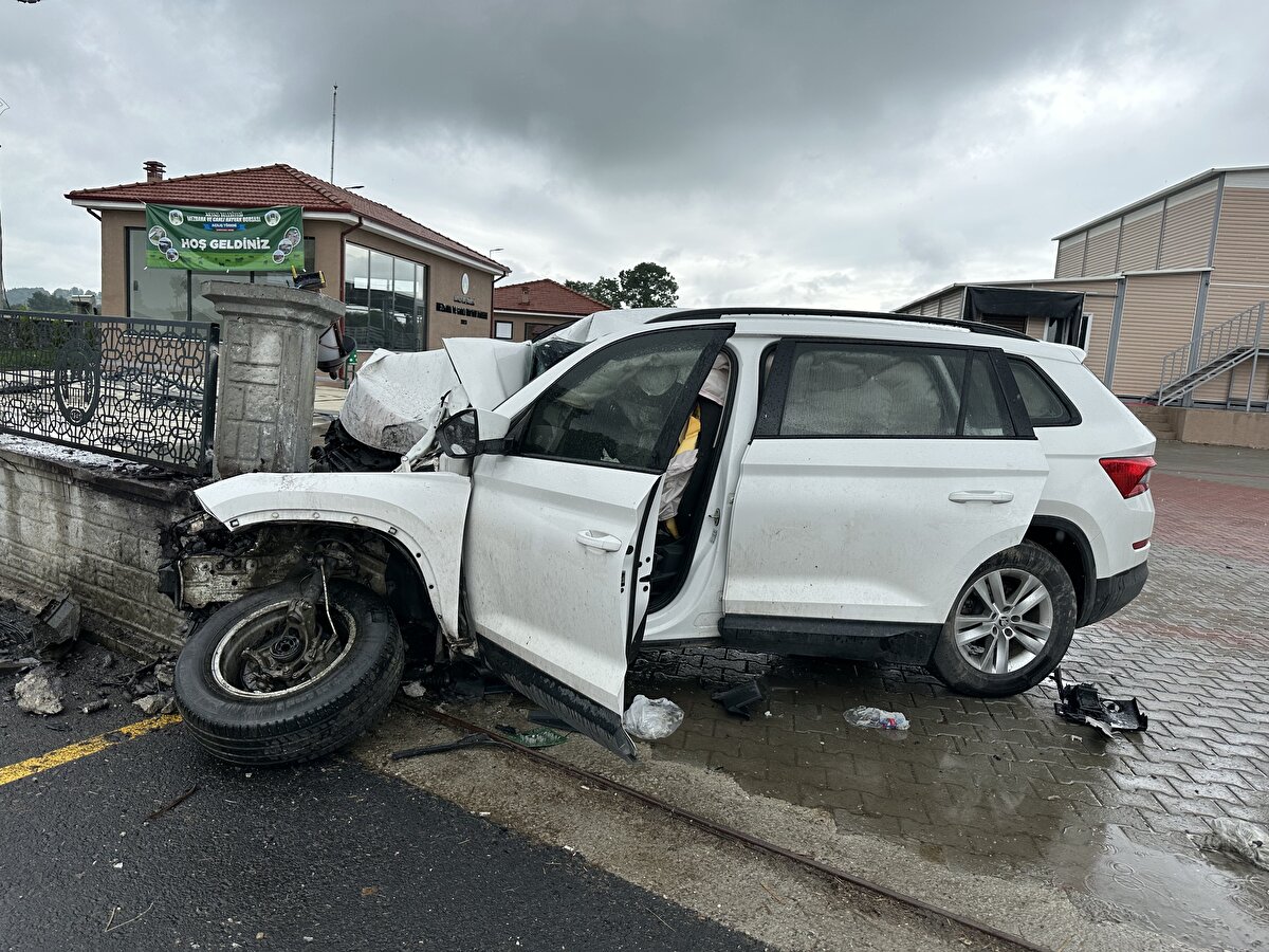 Ada Caddesi'nde seyreden Zafer K. (48) idaresindeki 54 HH 144 plakalı otomobil, Kızılcıkorman mevkisinde sağanak nedeniyle su birikintisinin oluştuğu yolda kontrolden çıkarak mezbaha ve canlı hayvan borsasının bahçe duvarına çarptı.