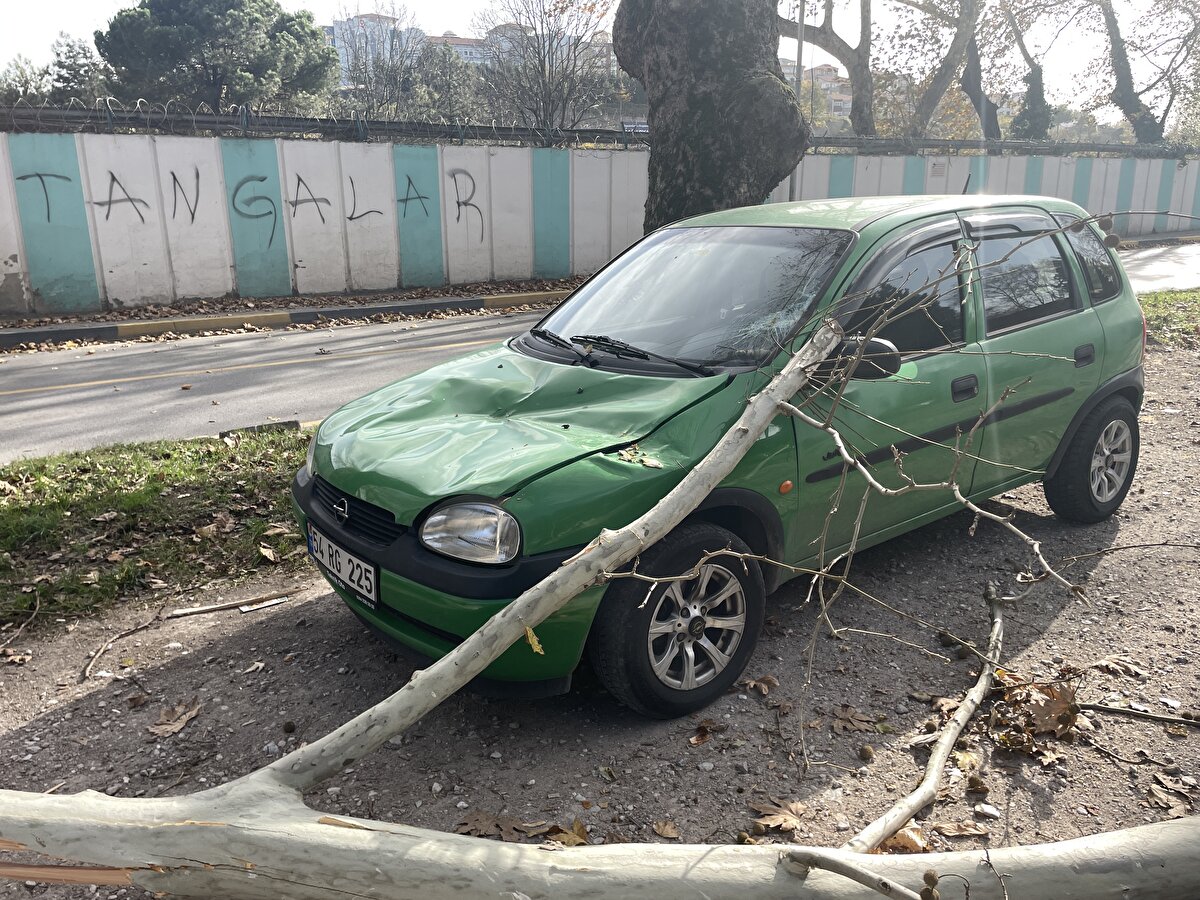 Kentte 3 gündür devam eden ve aralıklarla etkisini arttıran lodos nedeniyle Mithatpaşa Mahallesi Milli Egemenlik Caddesi'ndeki çınar ağacı ile başka bir ağacın dalları otopark olarak kullanılan arazideki araçların üzerine devrildi.