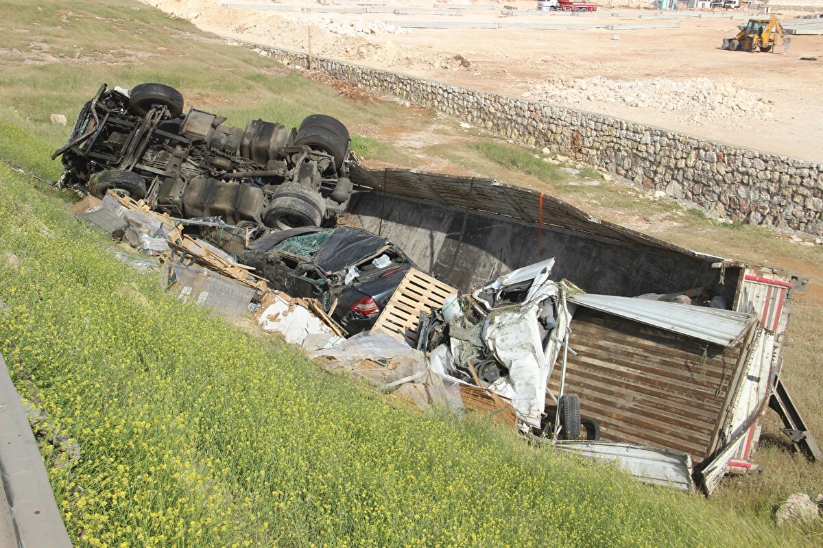 Sürücüleri öğrenilemeyen 63 KY 454 plakalı TIR ile 31 AFG 039 plakalı hafif ticari araç kafa kafaya çarpıştı. Şarampole savrulan hafif ticari araçtaki Ömer Yalçın (63), Reşit Kahya (75) ile üzerinde kimlik çıkmayan 3 kişi hayatını kaybetti.