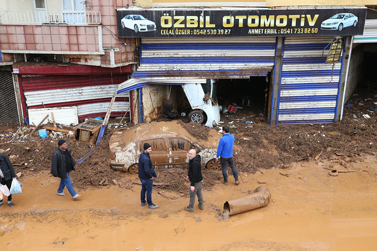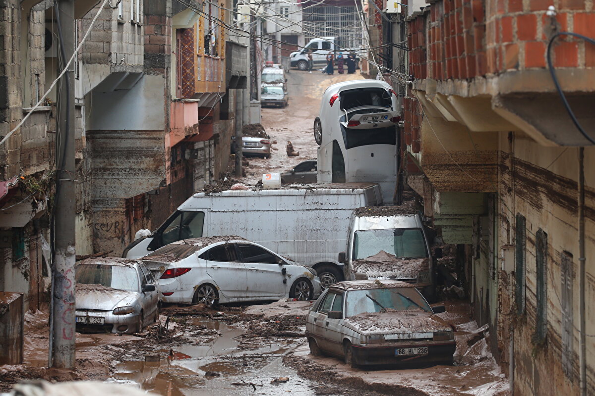 Suların tamamen çekilmesiyle ortaya çıkan ve üst üste çıkarak zarar gören araç ise felaketin boyutunu gözler önüne seriyor.