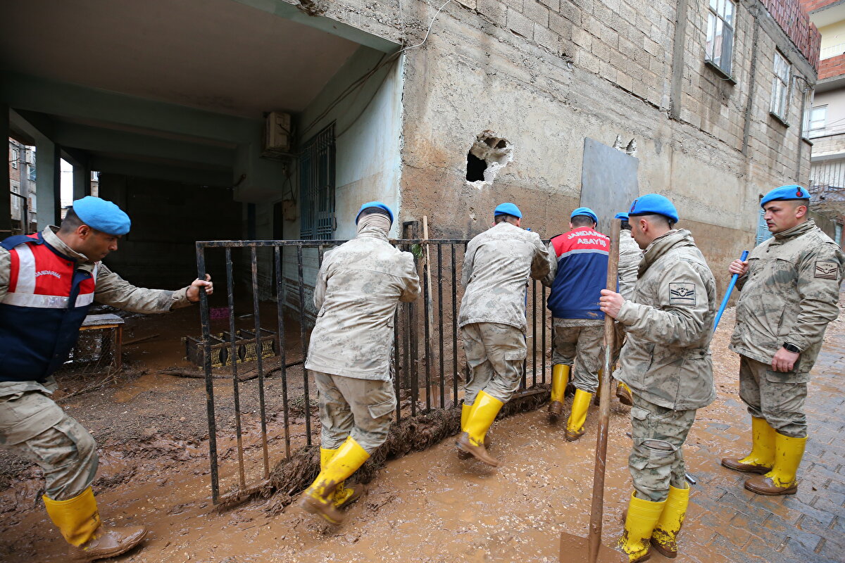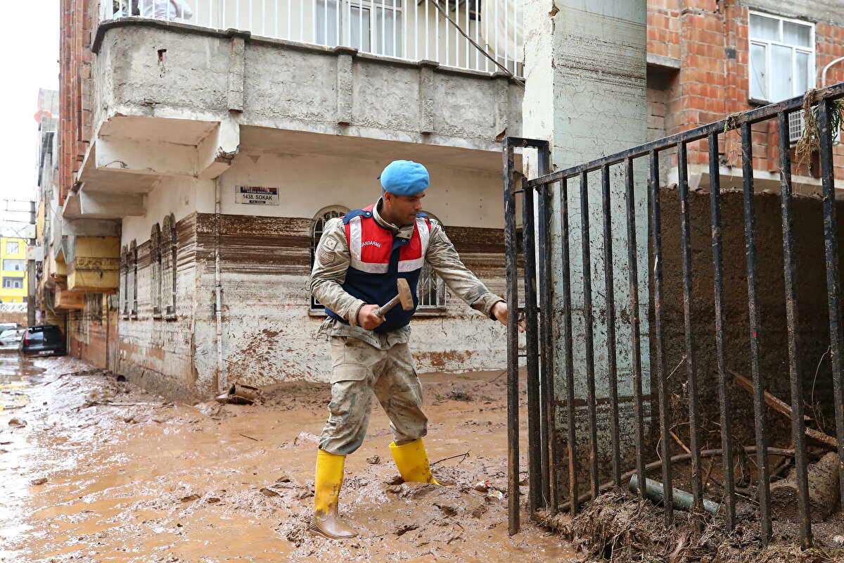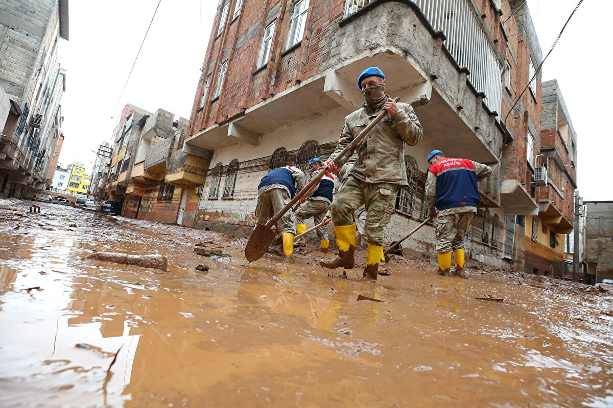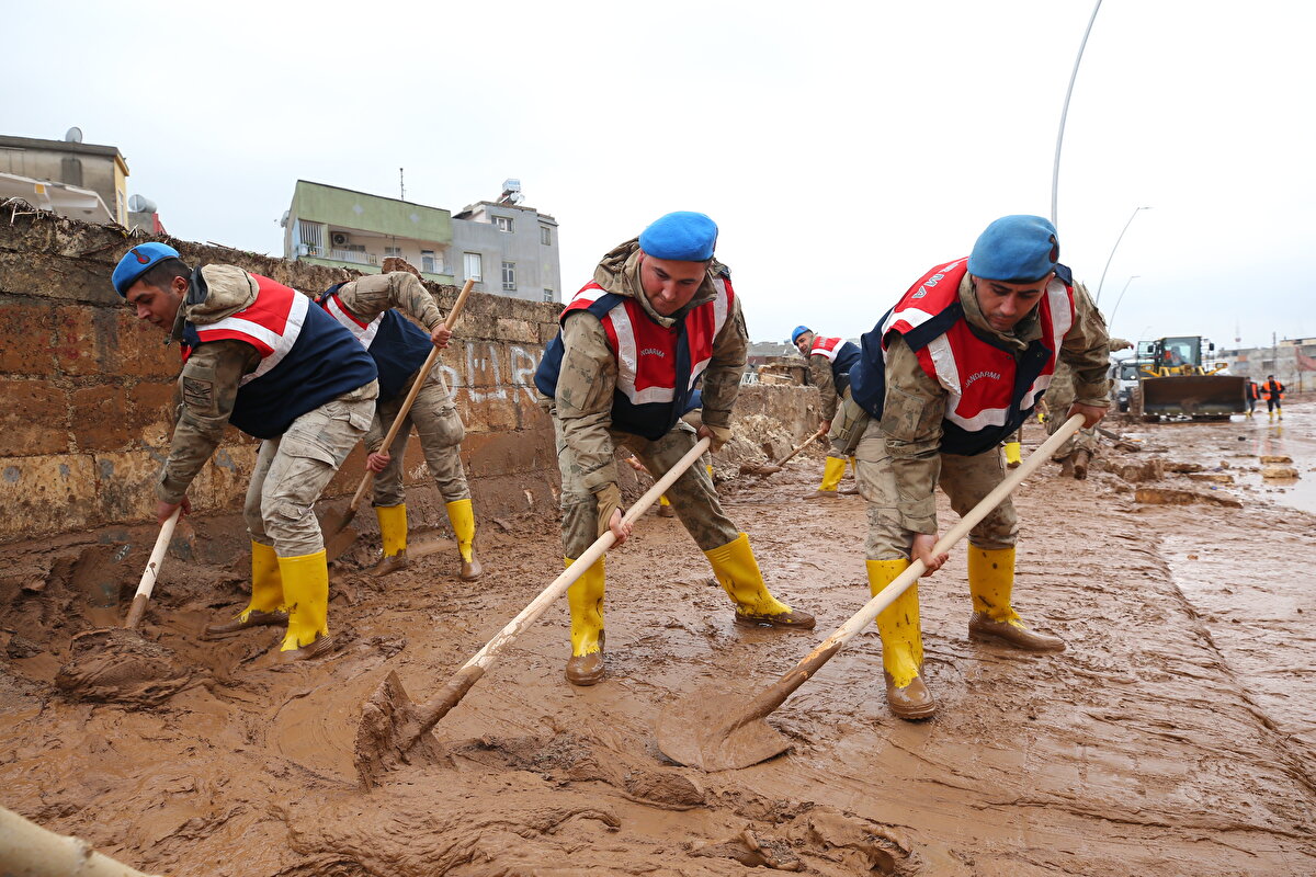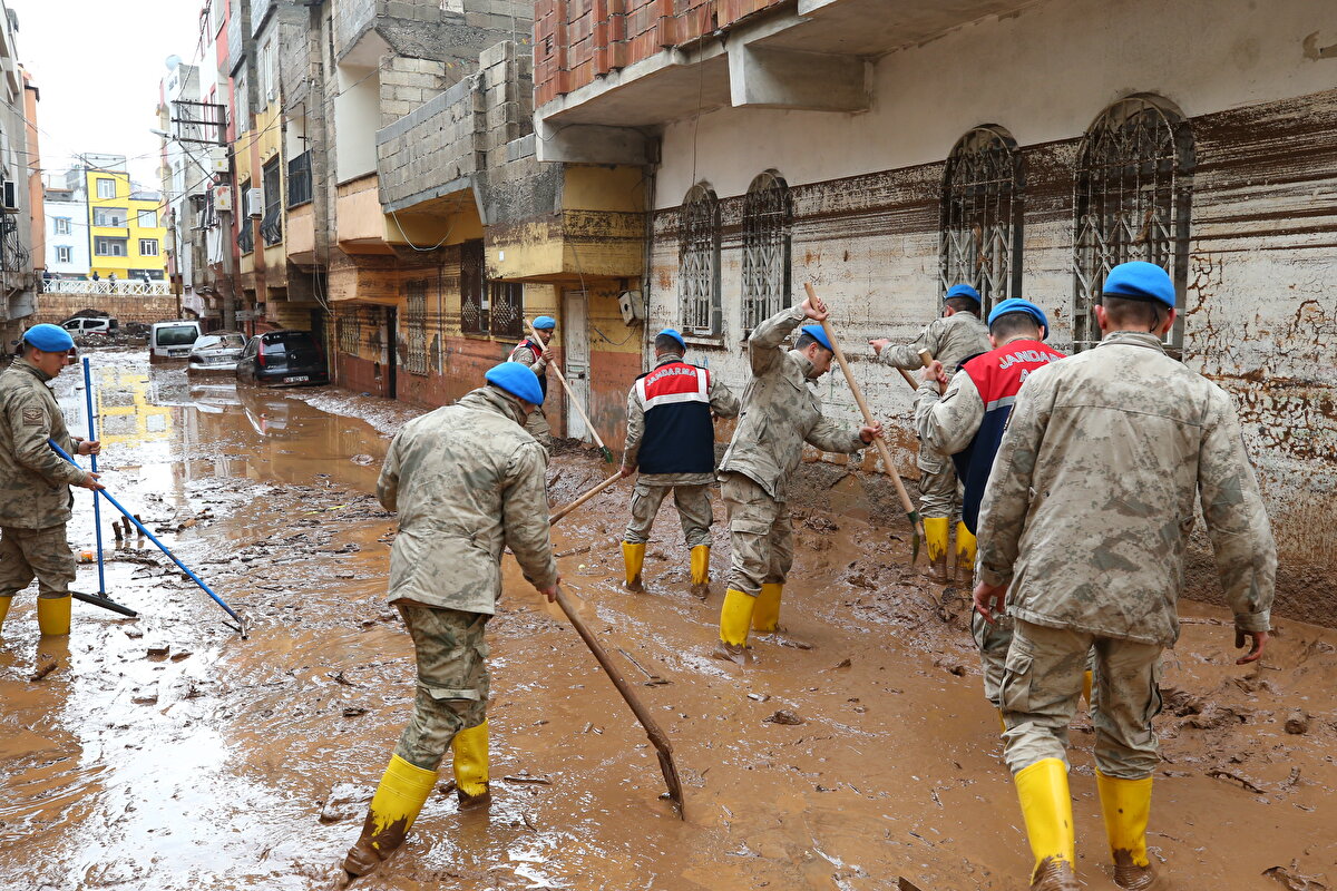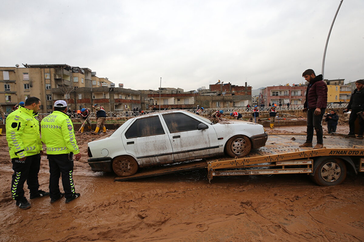 Suların tamamen çekilmesiyle ortaya çıkan çamur yığıntısı, ekipler tarafından temizlenirken, çamurlar taşan Karakoyun Deresi'ne tahliye amaçlı açılan bazı giderlerden akıtılıyor.