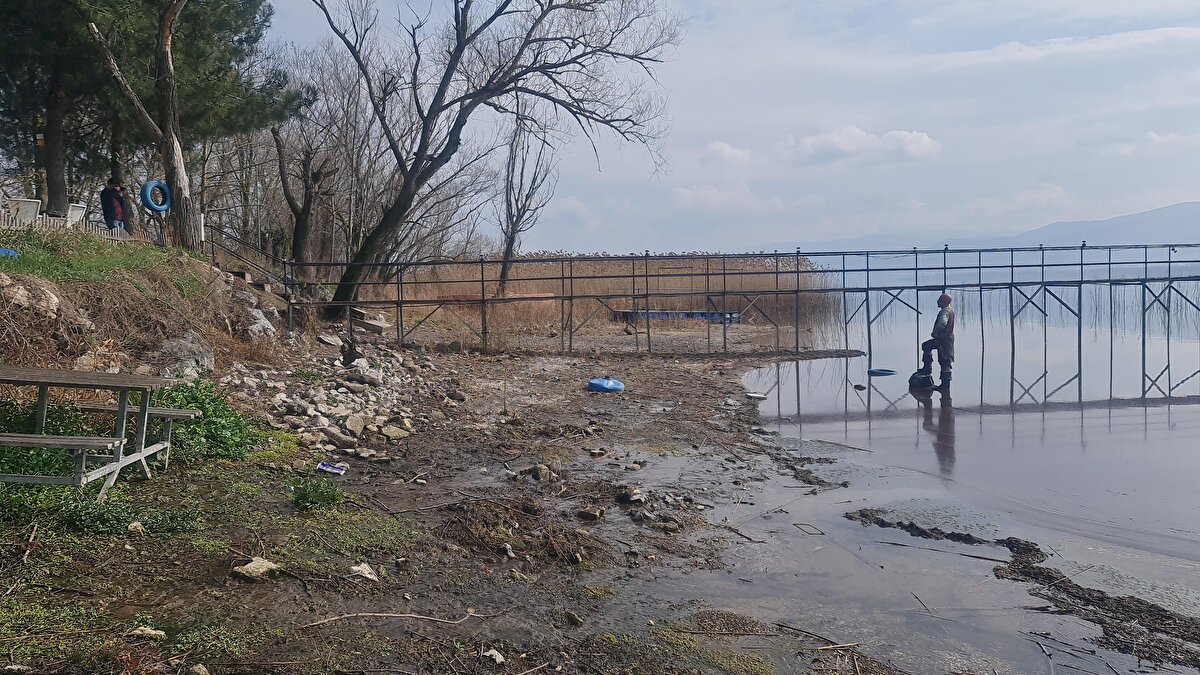 Kartepe ilçesinde Sapanca Gölü'ne kıyısı olan Eşme'de, mevsim yağışlarının az olması nedeniyle geçen ay sahil şeridinde su çekilmeleri yaşandı.