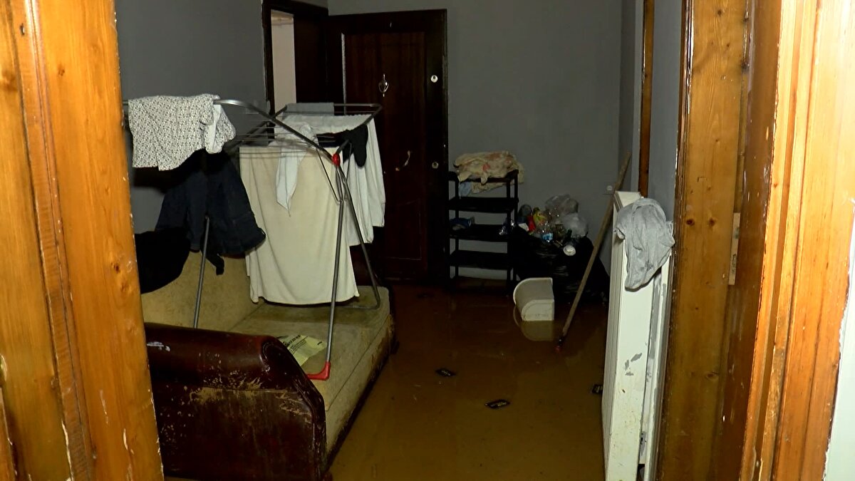 Sarıyer'de 6 işçinin kaldığı evi su bastı. Eşyalar kullanılamaz hale gelirken evde yaşayacak işçiler, kalacak yerlerinin olmadığını söyledi.