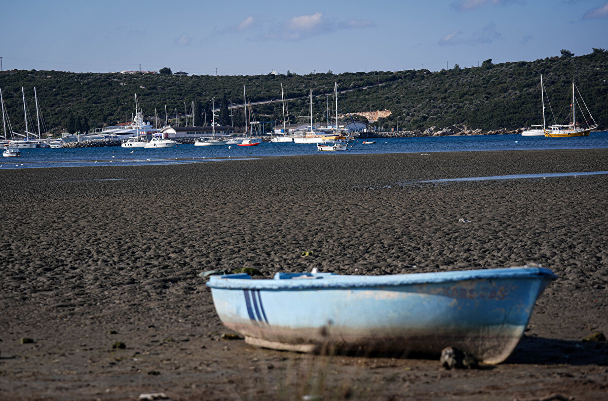İzmir'in Seferihisar ilçesinde deniz suyu kıyıdan yaklaşık 200 metre çekildi.
