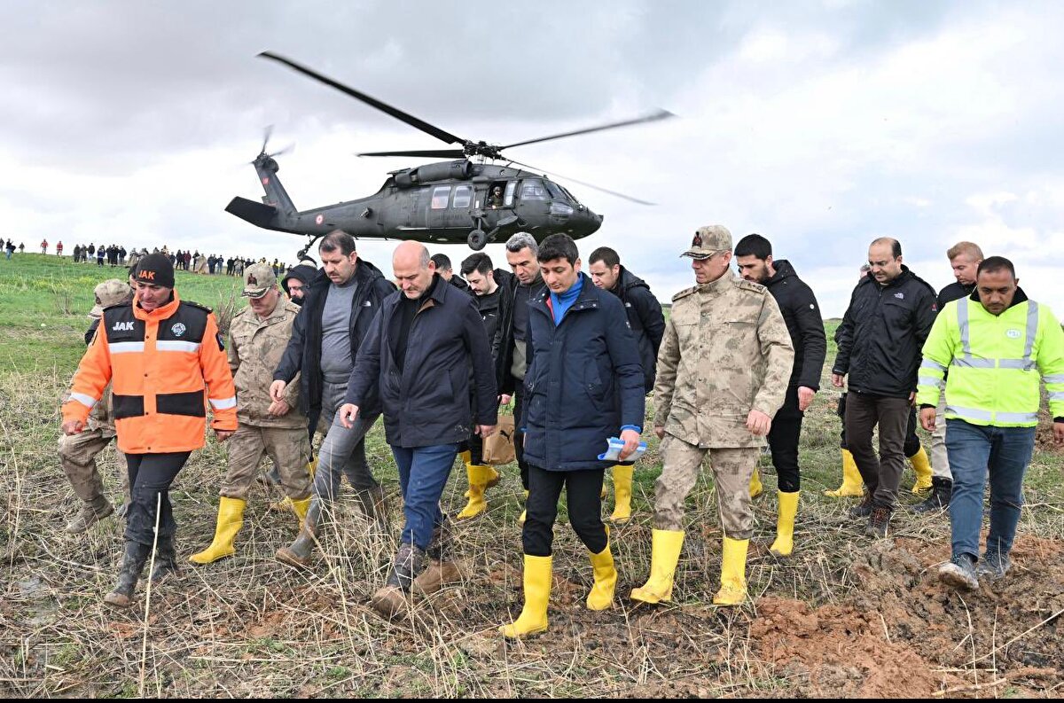 Ekiplerin çalışmalarına havadan 2 helikopter destek oluyor. Bölgede yürütülen arama çalışmalarını İçişleri Bakanı Süleyman Soylu, Vali Salih Ayhan ile helikopterle takip etti.