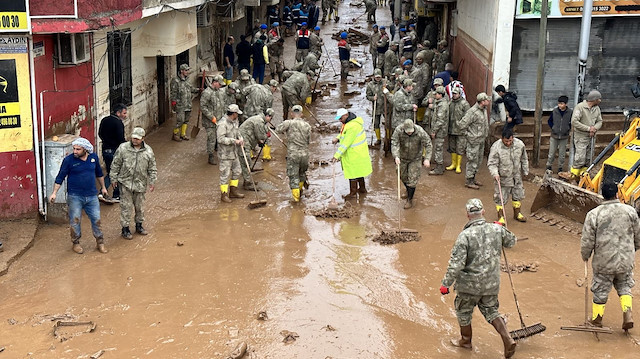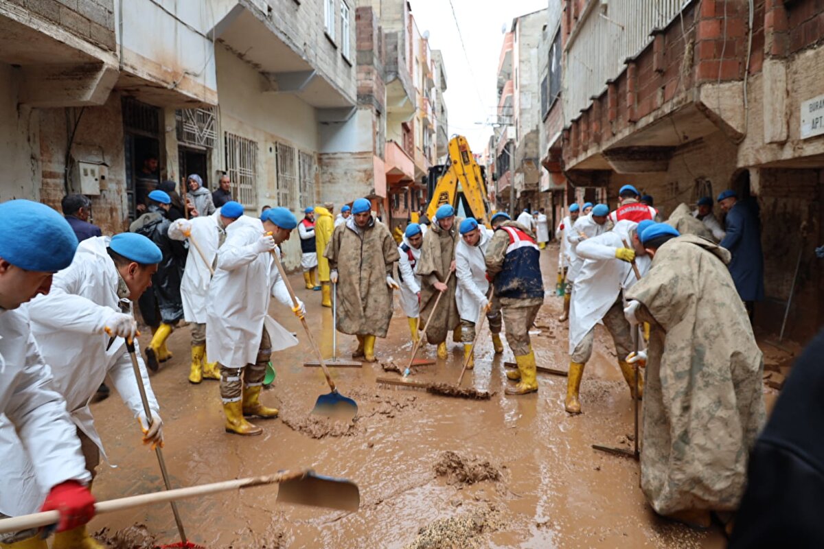Şanlıurfa'da 16 kişinin hayatını kaybettiği sel felaketinin ardından 2 bini asker yaklaşık 10 bin personel, çamurla kaplanan kenti temizliyor.