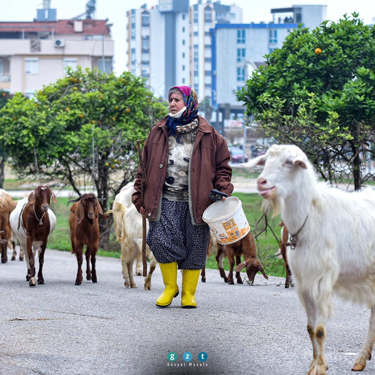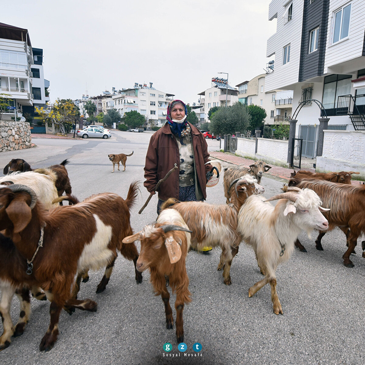 Antalya Konyaaltı Sahili'ne 500 metre uzakta doğup büyüdüğü evi yıllar içinde lüks binalar arasında kalmasına rağmen çocukluğundan bu yana yaptığı çobanlığı sürdüren Menşure Albayram (60), her gün çevredekilerin şaşkın bakışı arasında keçilerini mahallenin nadir kalan yeşil alanlarına otlatmaya götürüyor. Elinde sopası ve köpeği 'Sarı' ile caddeleri aşıp hayvanlarını otlatan 'Menşure Teyze', keçilerini 'Şımarık', 'Yaren', 'Mayıs', 'Yaz' gibi isimlerle çağırıyor. Menşure Albayram, kendisine ait 15 keçinin yanı sıra, hayvan sevgisinden dolayı komşu ve yakınlarının keçilerine de çobanlık yapıp, sütünü satıyor. Sabahtan akşama kadar Kuşkavağı Mahallesi'nin sokaklarında yeşil alanları dolaşan Menşure Albayram, hayvanlarına çocuğu gibi bakıp, 'Yavrum, kızım' diye seslenmesiyle de mahalle sakinlerinin gönlünü kazandı. Keçilerine, 'Karnınızı doyurun', 'Hadi gidiyoruz', 'Yaramazlık yapmayın' diye seslenen Menşure Albayram'ın hayvanlarıyla iletişimi, çevresindekileri de şaşırtıyor.