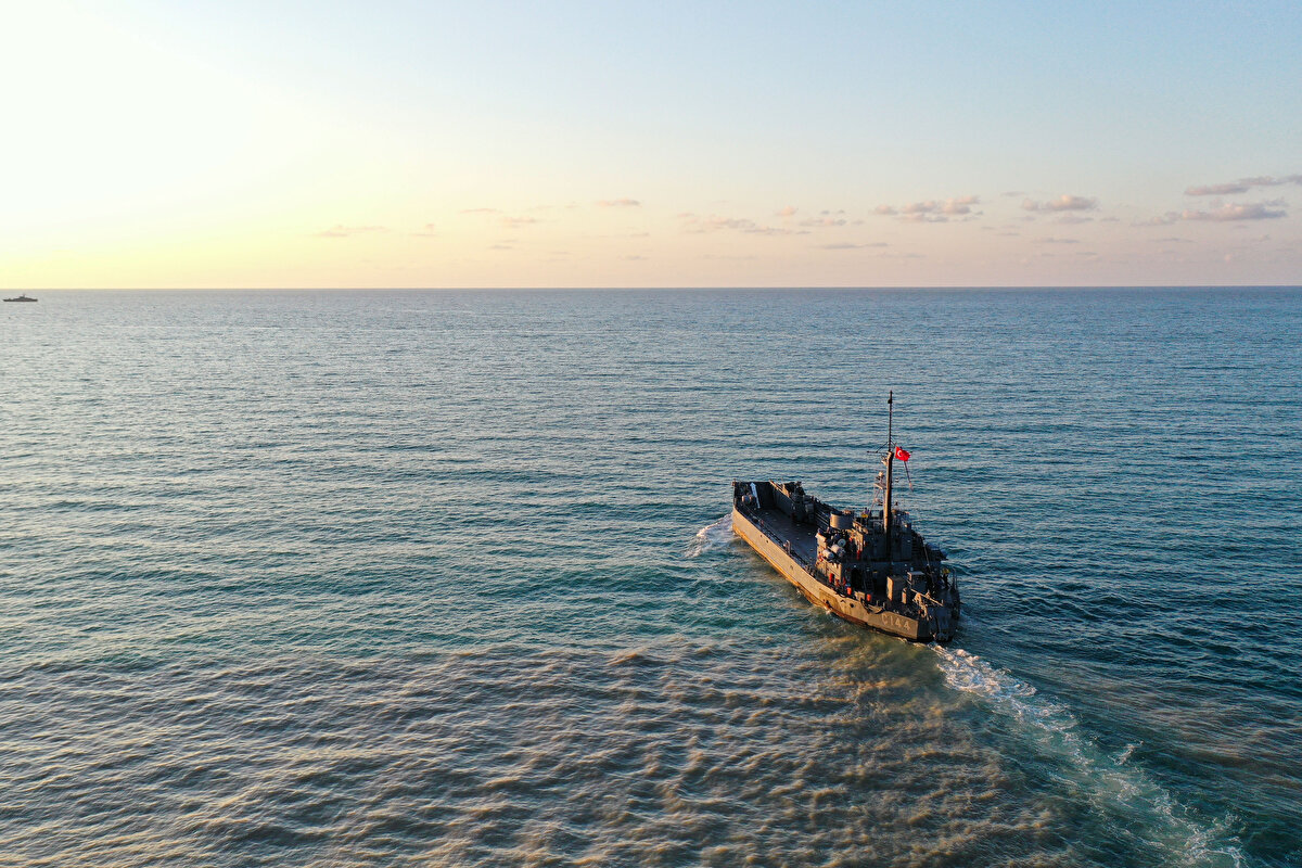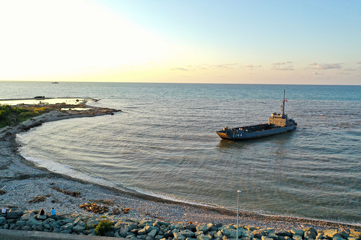 TCGÇ-144 isimli çıkarma gemisine Kastamonu'nun Abana sahilinden yüklenen 7 iş makinesi, 2 saatlik yolculuğun ardından Türkeli'de karaya çıkarıldı.