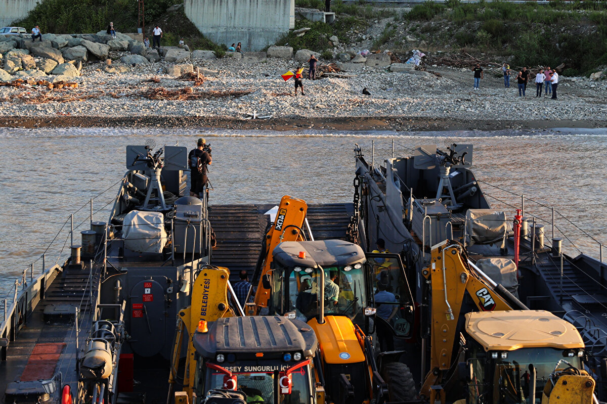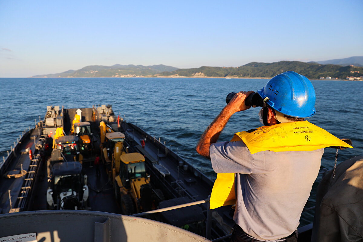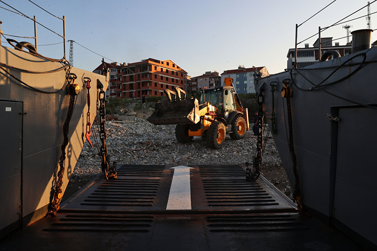 Sel felaketi nedeniyle ulaşım yolları kapanan Sinop'un Türkeli ilçesine, Deniz Kuvvetleri Komutanlığı'nın çıkarma gemisiyle 7 iş makinesi götürüldü. TCGÇ-144 isimli çıkarma gemisine Kastamonu'nun Abana sahilinden yüklenen iş makineleri iki saatlik yolculuğun ardından Türkeli'de karaya çıkarıldı.