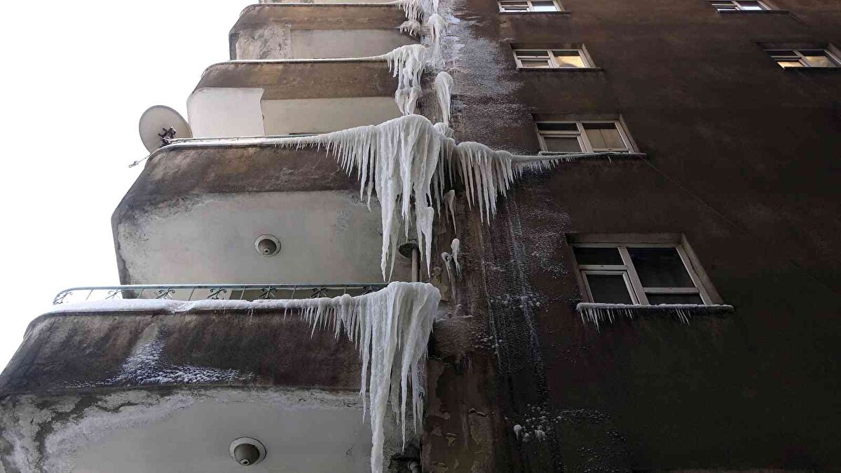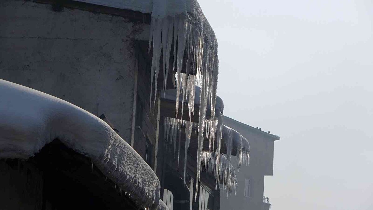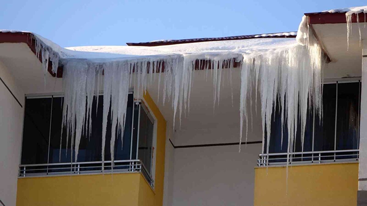 Sibirya’yı andıran görüntüler oluştuğu ilçede, bina çatılarında ve dış cephelerinde oluşan buz sarkıtları görenleri şaşırtıyor.
