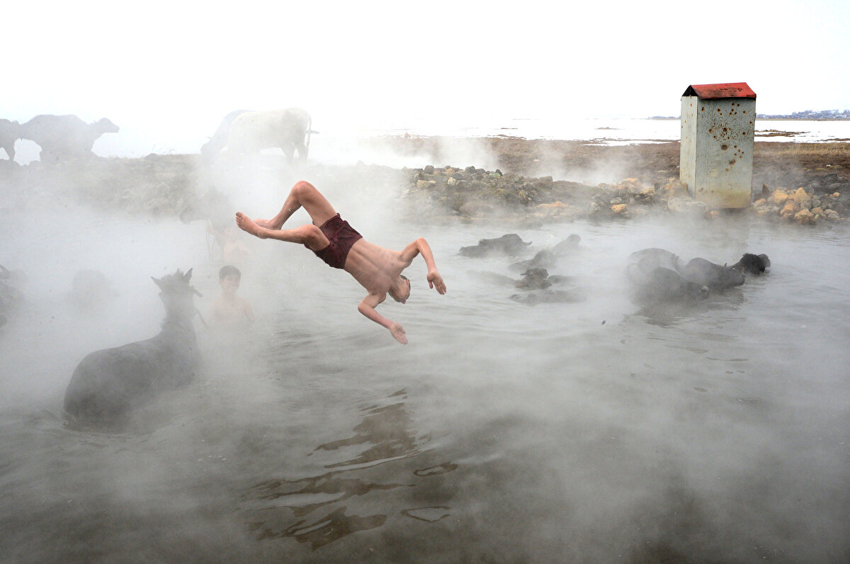Sıcaklık -20: Mandaların kaplıca suyu keyfi