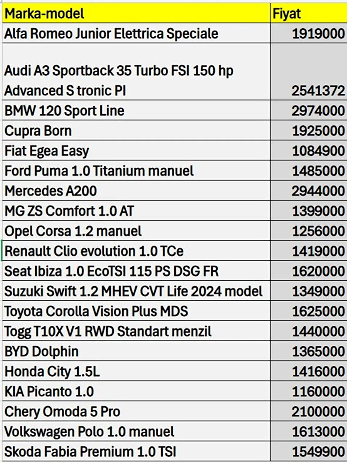 Otomobil fiyatlar kur hareketlerine bağlı olarak değişiyor. Mayıs ayıyla birlikte otomobil fiyat listeleri güncellendi. İşte en ucuz sıfır otomobiller: