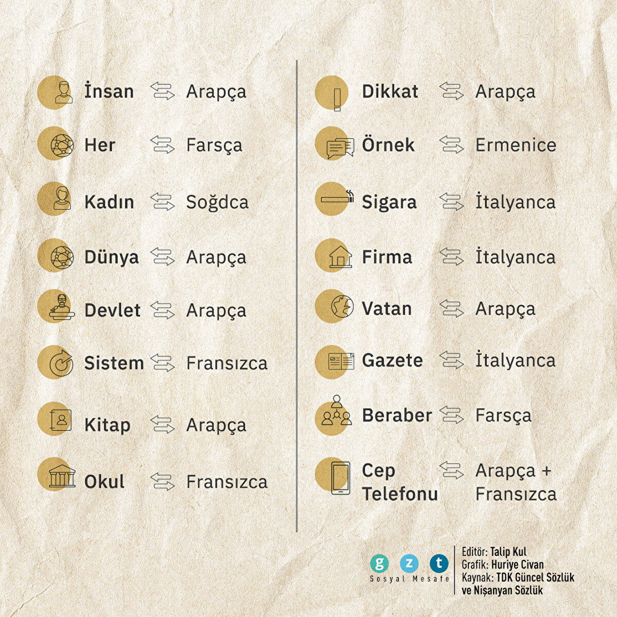 Günlük hayatta sıklıkla kullandığımız 1000 kelimenin büyük bir bölümü Türkçe kökenli kelimelerden oluşurken, Arapça, Farsça, İtalyanca ve Fransızca kelimelere de sıklıkla rastlanıyor.