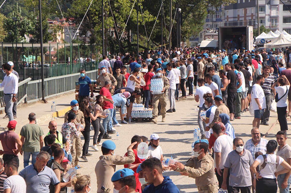 İlçenin iki yakasına ulaşımın sağlandığı hasarlı köprünün üzerinde erzak yardımları için yaklaşık 200 metrelik insan zinciri oluşturuldu. Köprü üzerinde su ve yiyecek yardımları elden ele uzatılarak, halka ulaştırıldı.