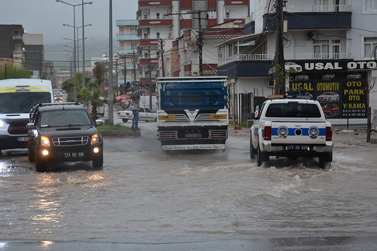 Şırnak'ın Silopi ilçesinde etkili olan sağanak nedeniyle cadde ve sokakları su bastı, bazı araçlar yolda mahsur kaldı. Kaymakamlık, tüm okul kademelerinde eğitim-öğretime bir gün ara, kamuda çalışan hamile ve engelli görevlilere de idari izin verildiğini duyurdu.