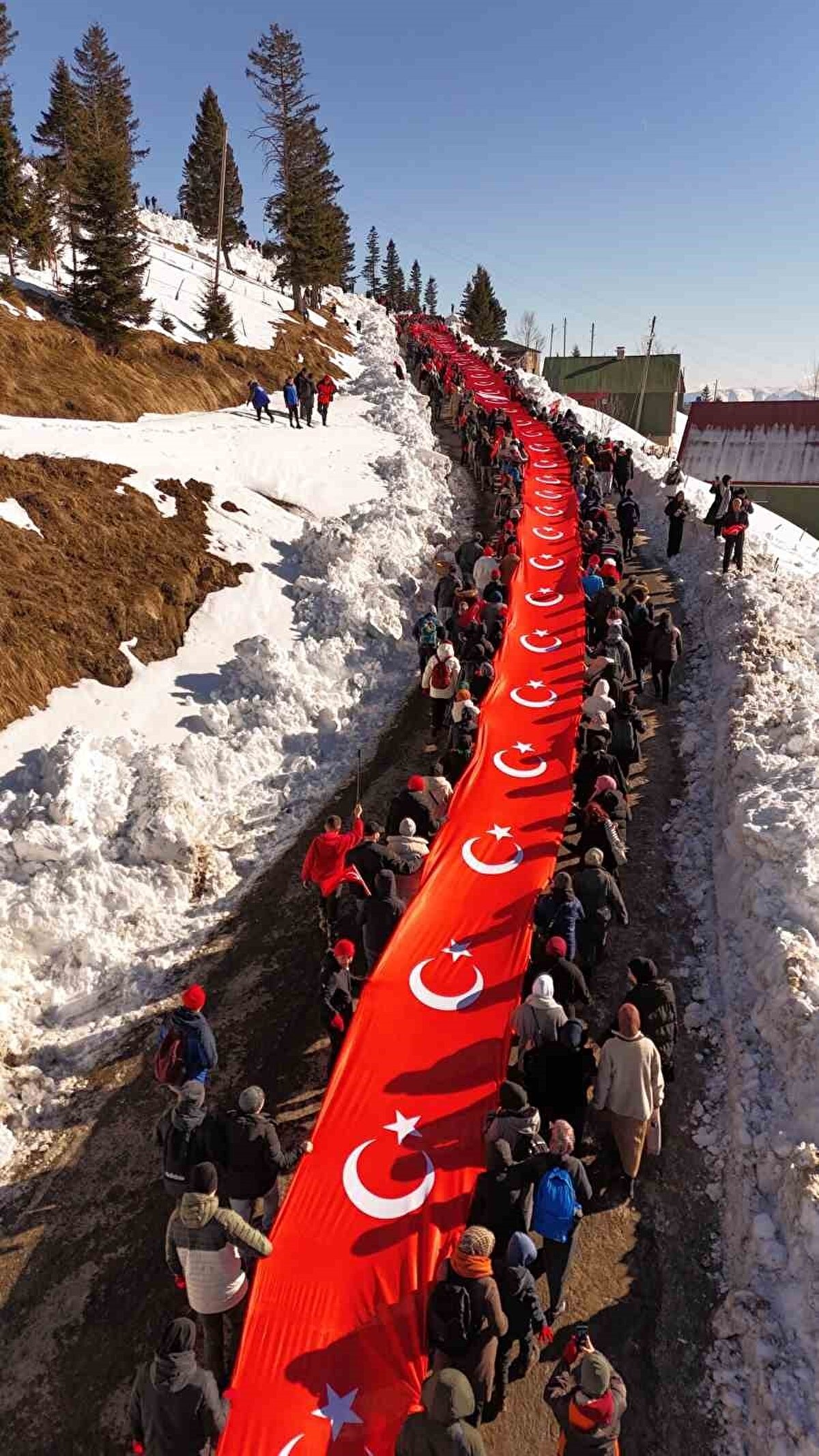 Katılımcılar, karla kaplı dağ yolunda yürüyerek, Sarıkamış Harekatı’nda donarak şehit düşen askerleri saygıyla andı.