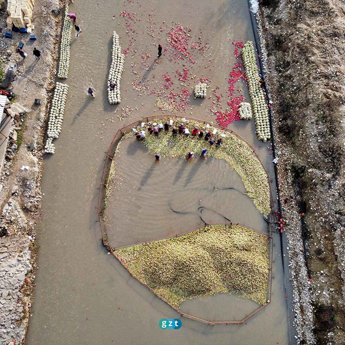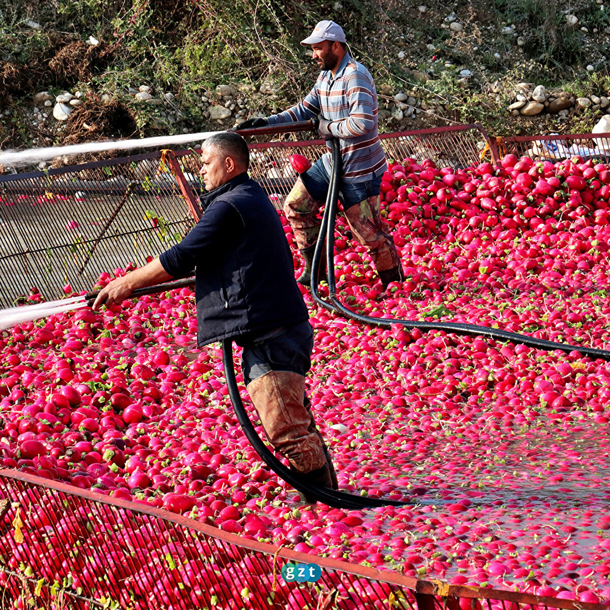 Osmaniye'nin Kadirli ilçesinde, toplanmasından yıkanmasına kadar zahmetli süre ardından sofralardaki yerini alan turp, yöredeki kadınlara da istihdam kapısı oluşturuyor