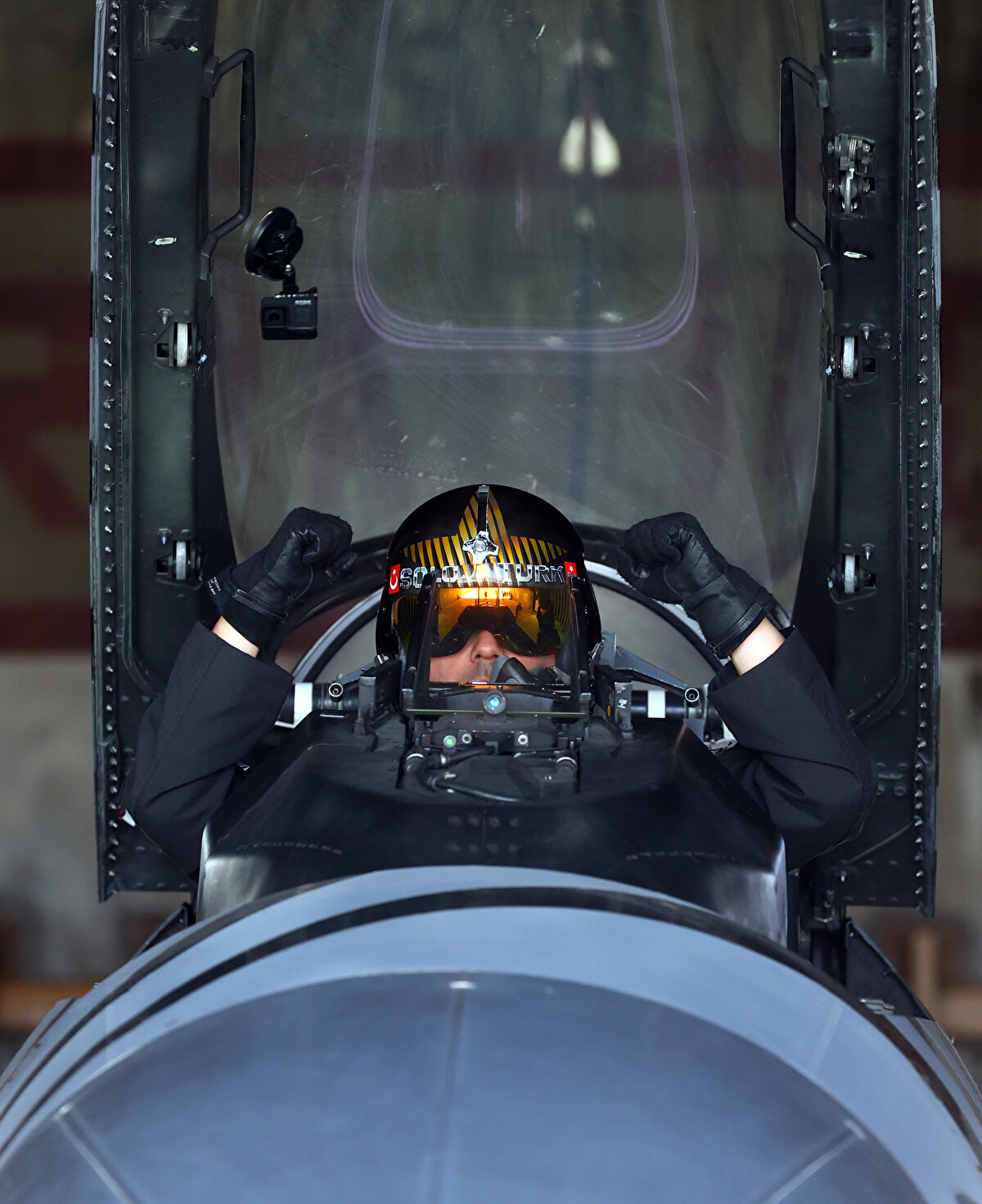 Uçağın burun kısmına doğru uzanan siyah ve gri çapraz çizgiler, havacıların hızlı düşünme ve karar verme, sürekli ilerleme ve sınır tanımama gibi niteliklerini betimliyor.