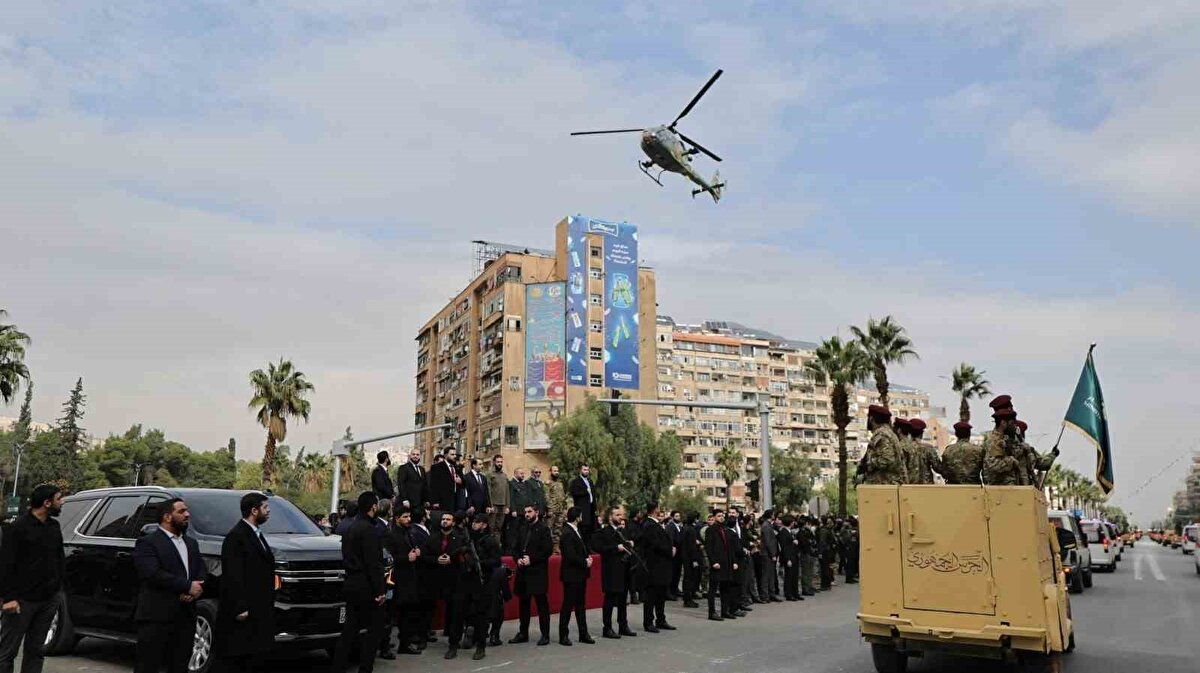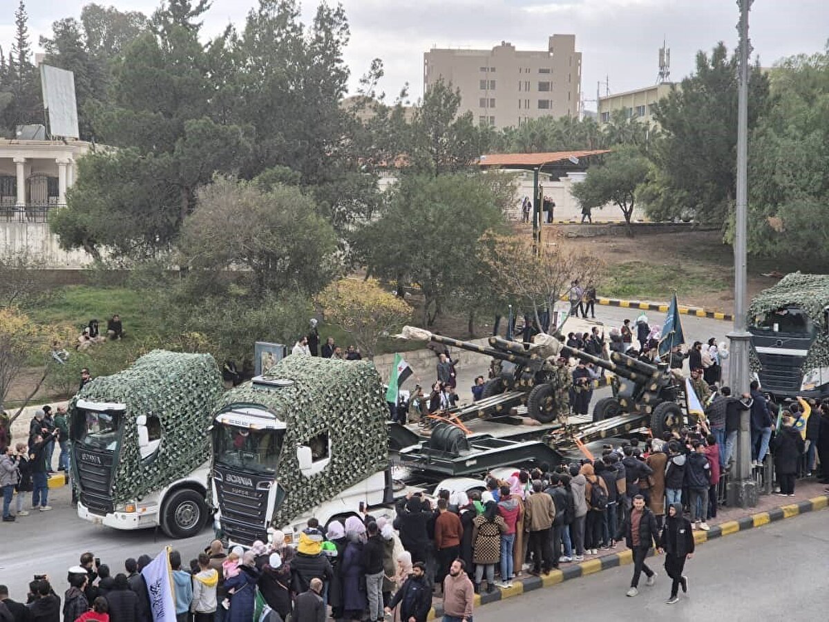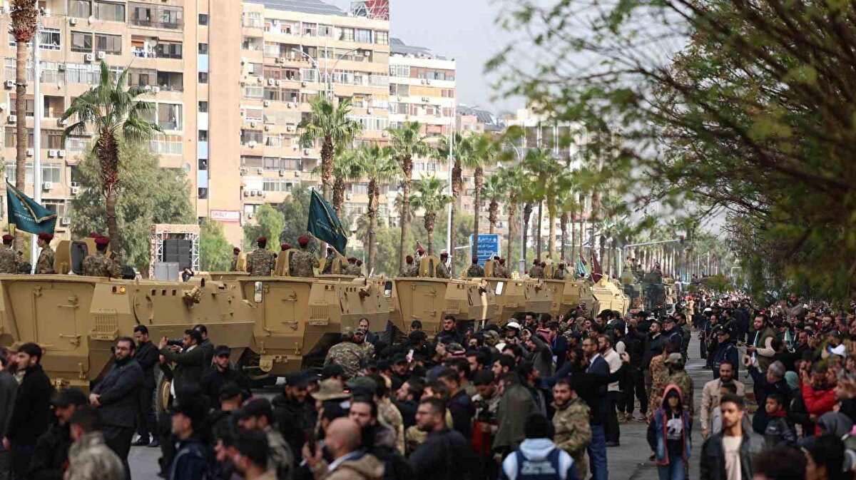 Suriye'de Beşar Esad rejiminin çöküşünün birinci yıl dönümünde başkent Şam'da düzenlenen törenler, yeni ordunun geniş katılımlı askeri geçişiyle dikkat çekti. Sabah saatlerinde Emevi Camii'nde başlayan kutlamalara Devlet Başkanı Ahmed eş-Şara da katıldı. Tören, hem rejim sonrası döneme dair siyasi mesajlar hem de yeni askeri yapının kapasitesine yönelik güçlü bir vitrin oluşturdu.