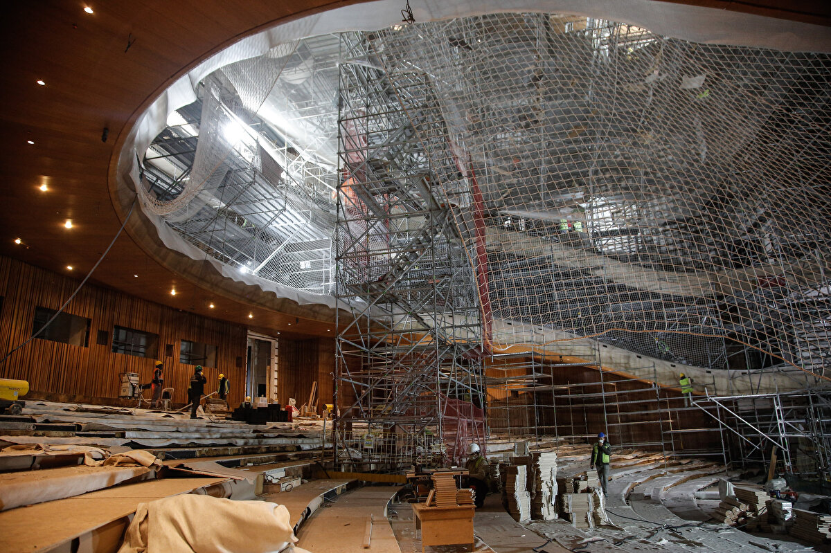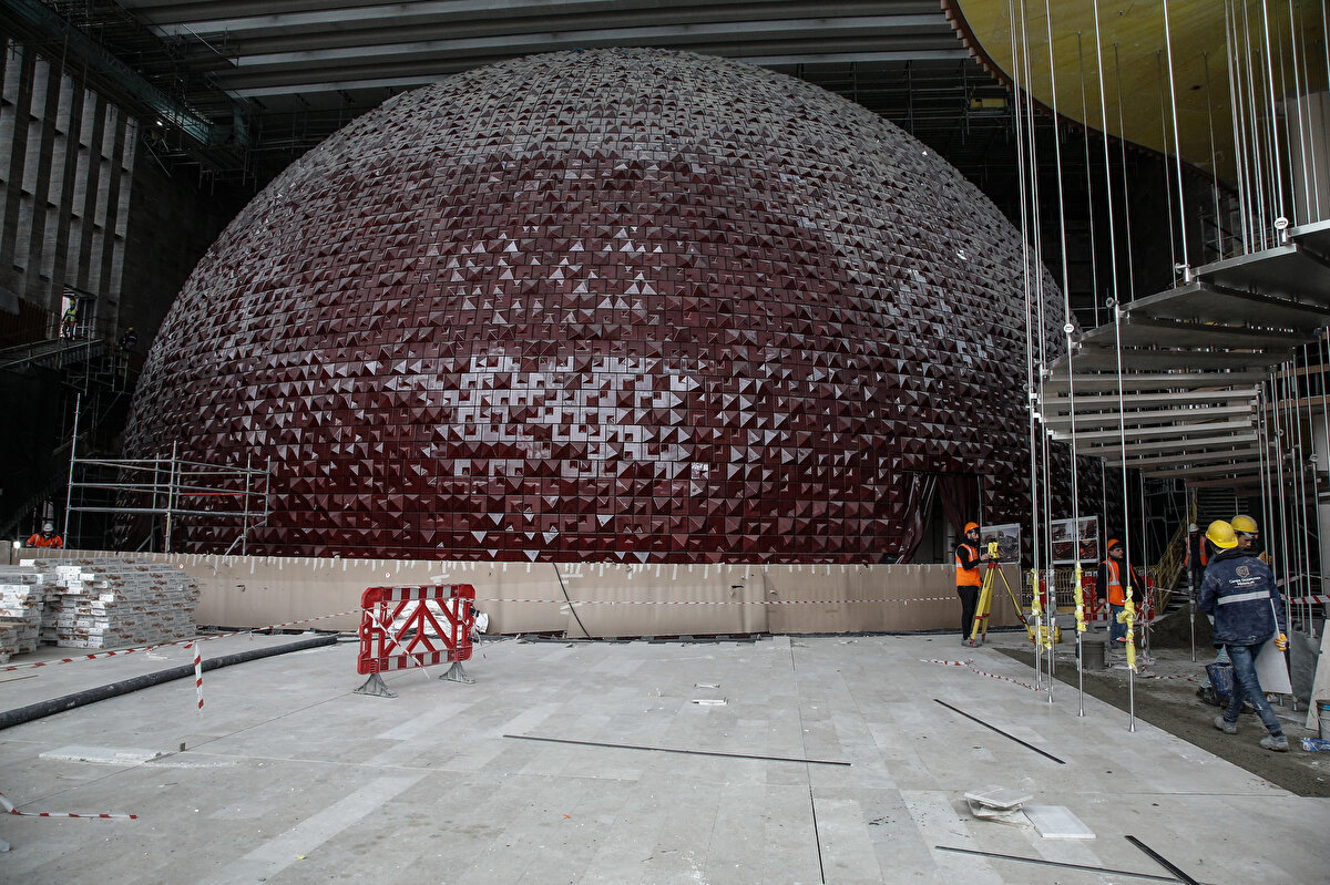 805 kişilik bir tiyatro salonu ve kubbeli opera salonunda seyirci bölümünün zemin çalışmaları tamamlandı.