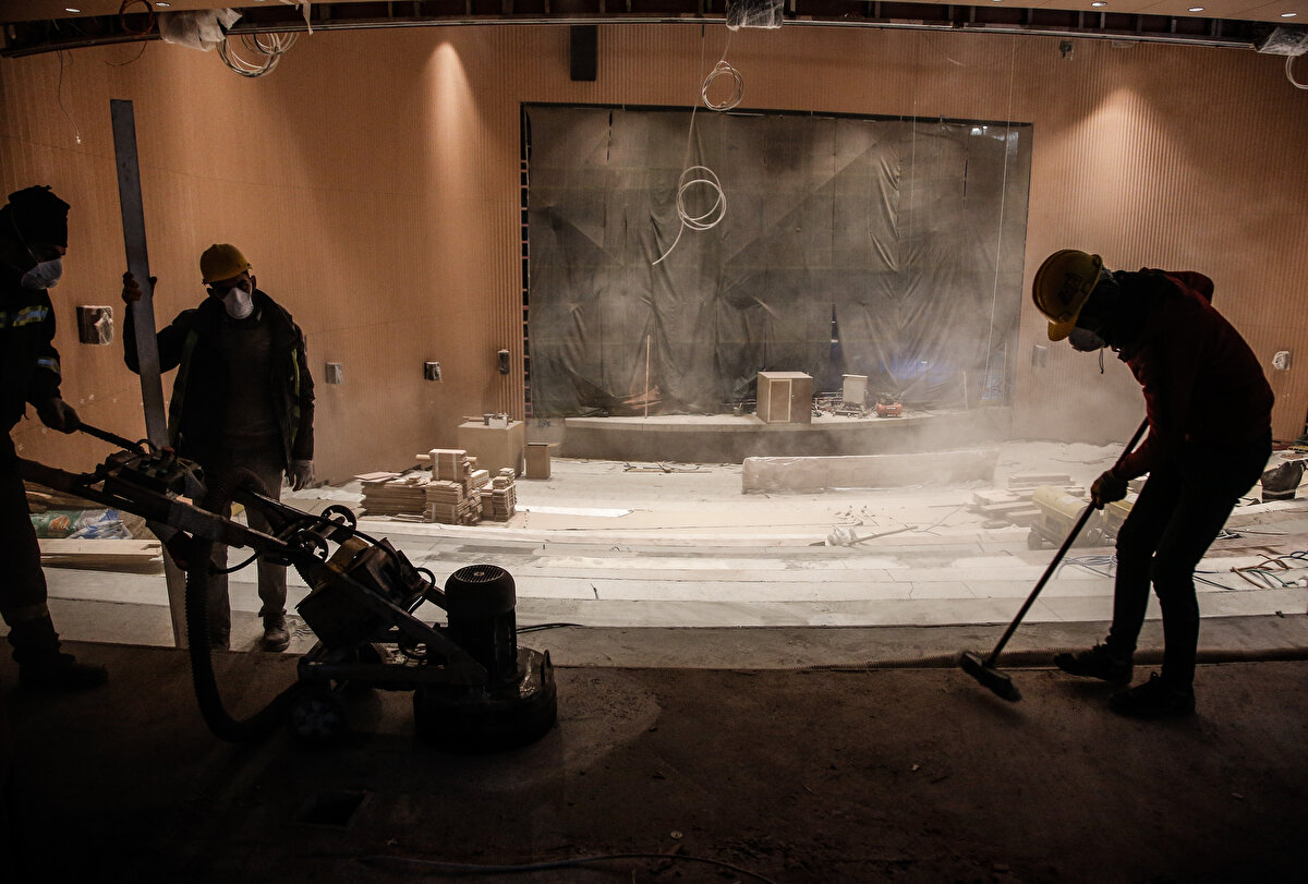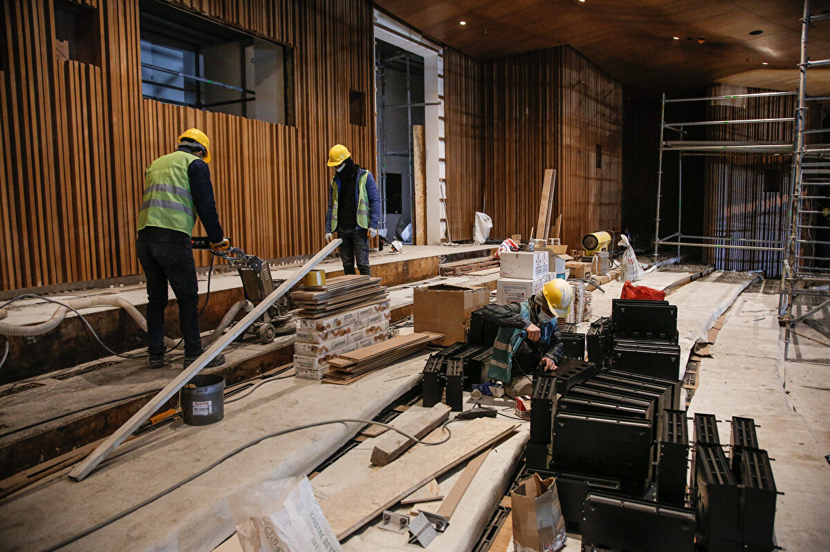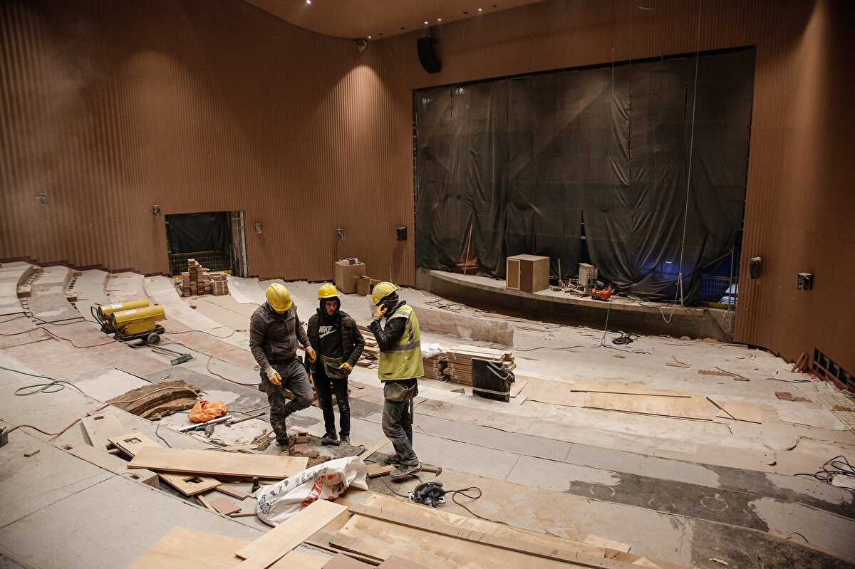 Atölye ve depo alanları, bale çalışma salonları, solist ve orkestra çalışma odaları, kayıt stüdyosu ve prova salonlarında da çalışmalar hızla sürüyor.