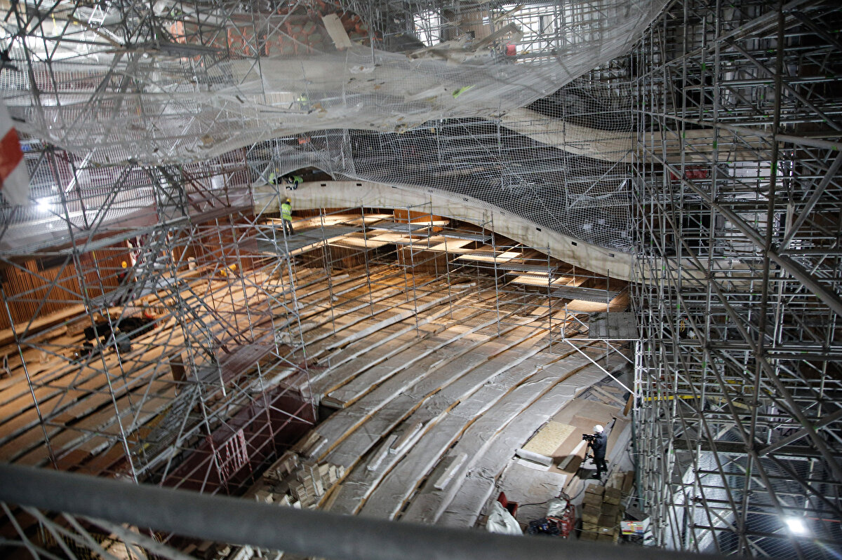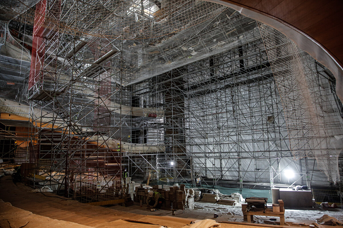 Kırmızı renkte yapılan opera salonun devamsa kubbesi tamamlandı. Salonun içinde bulunan iskelelerin söküm işlemlerine bugün başlandı. Salonun sahnesinde ise çalışmalar bütün hızıyla sürüyor.