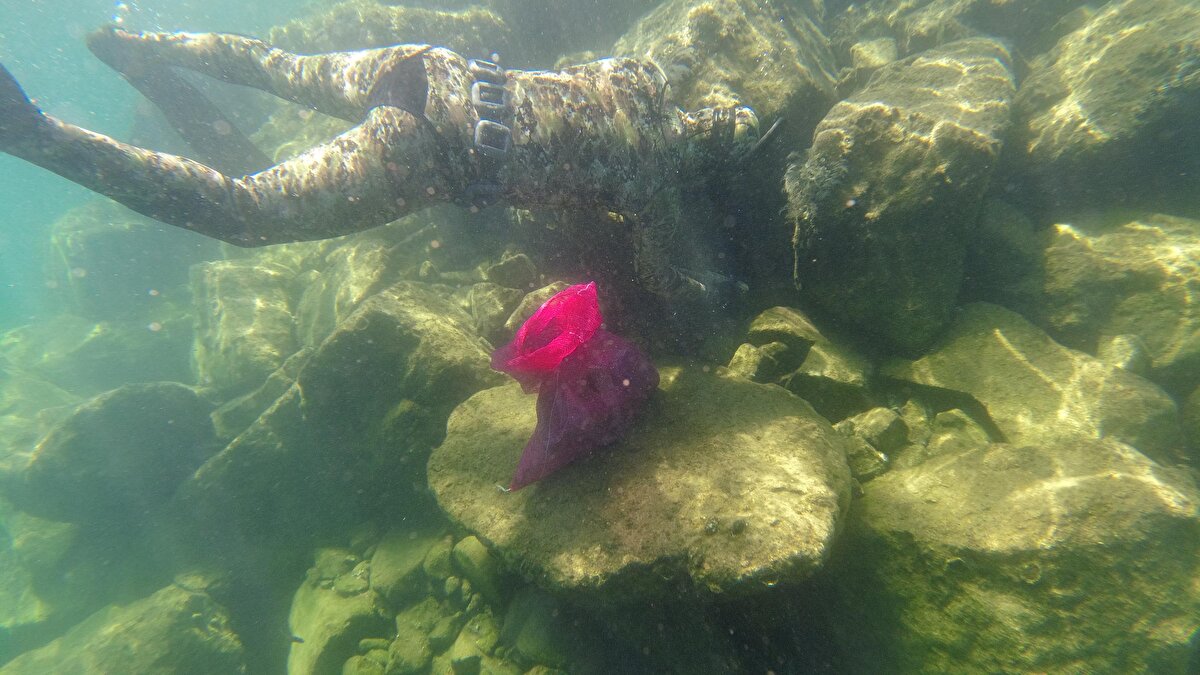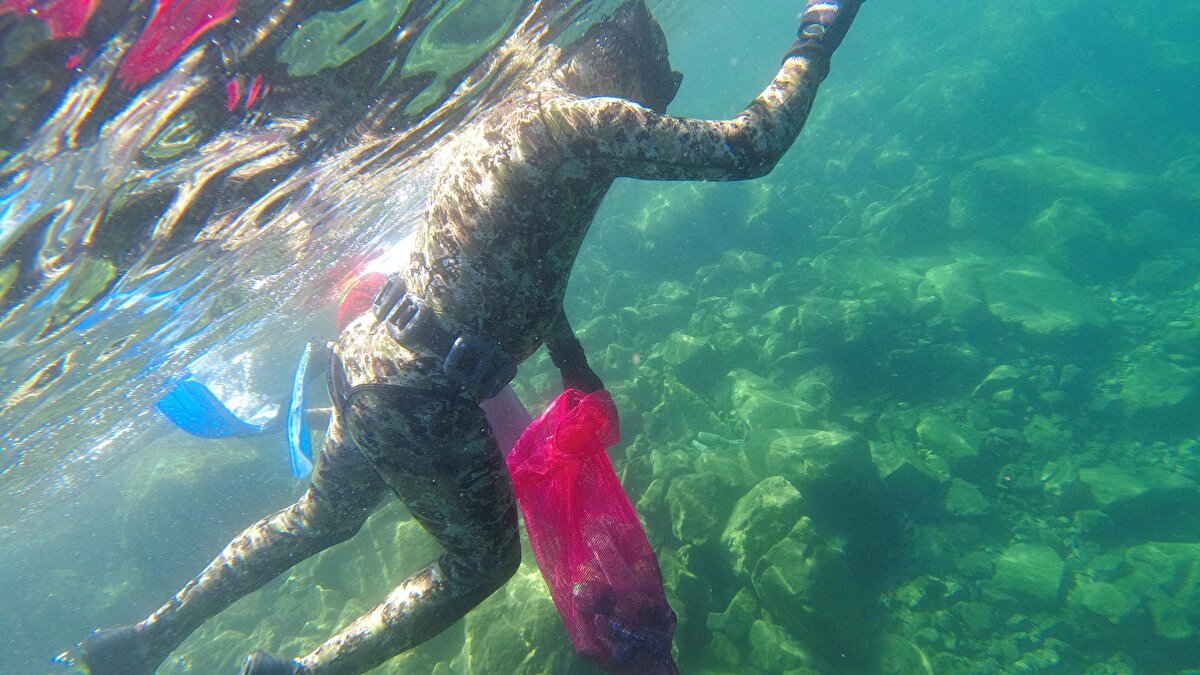 Dalgıçlar, 2 saat boyunca deniz dibinden atık topladı. 10 dalgıç, atıkları çuvallara doldurup, tekneye koydu.