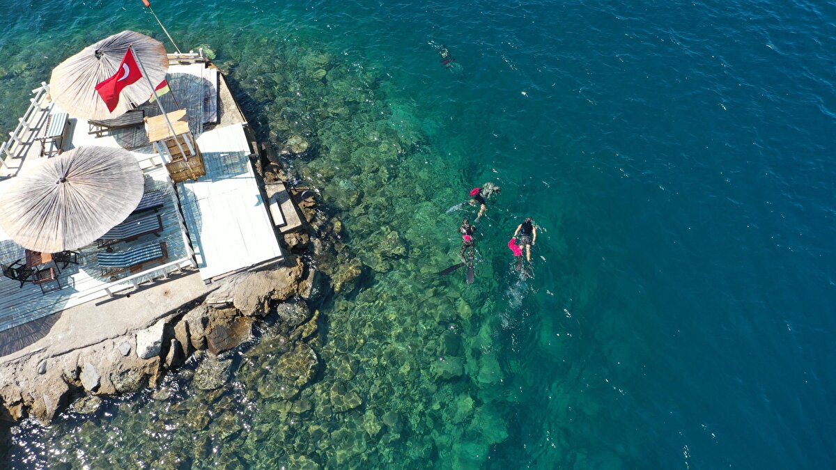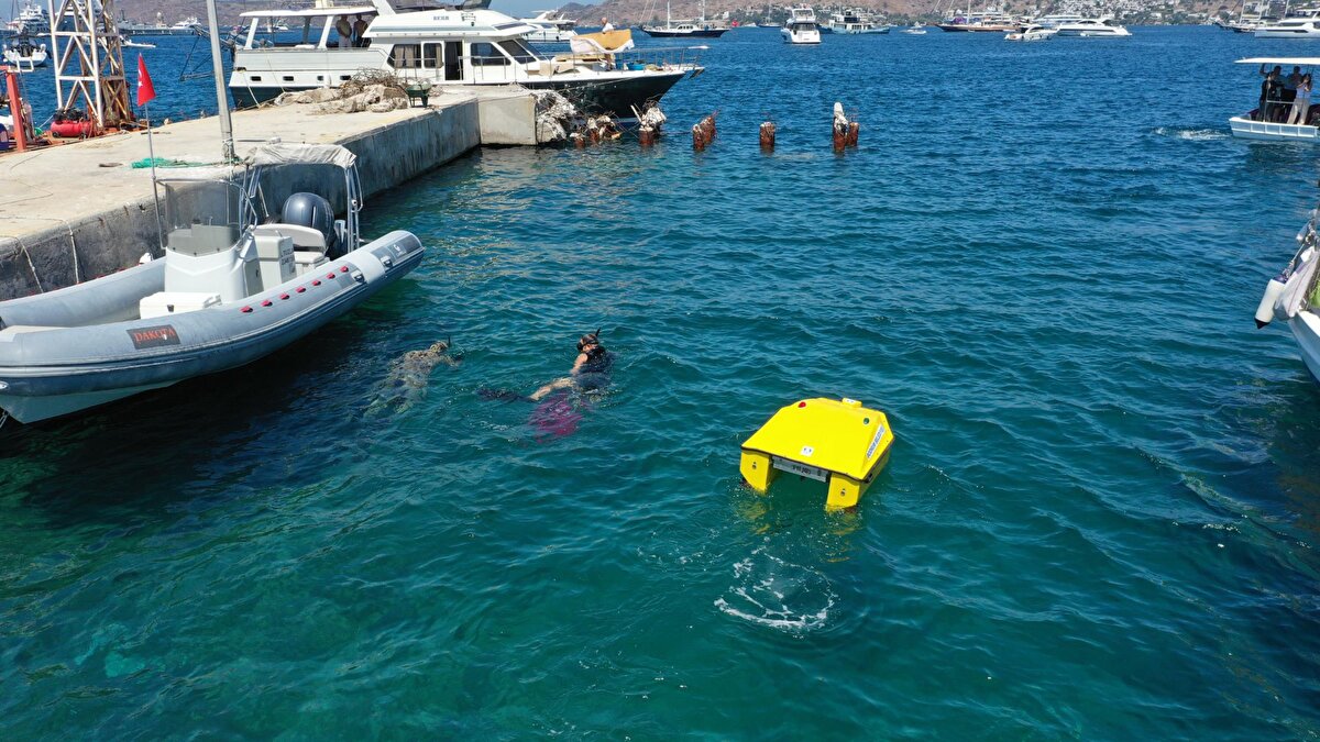 Yalıkavak İskelesi'nde Bodrum Belediyesi'nce 'Denize en çok mavi yakışır' sloganıyla denizi dibi temizliği yapıldı.