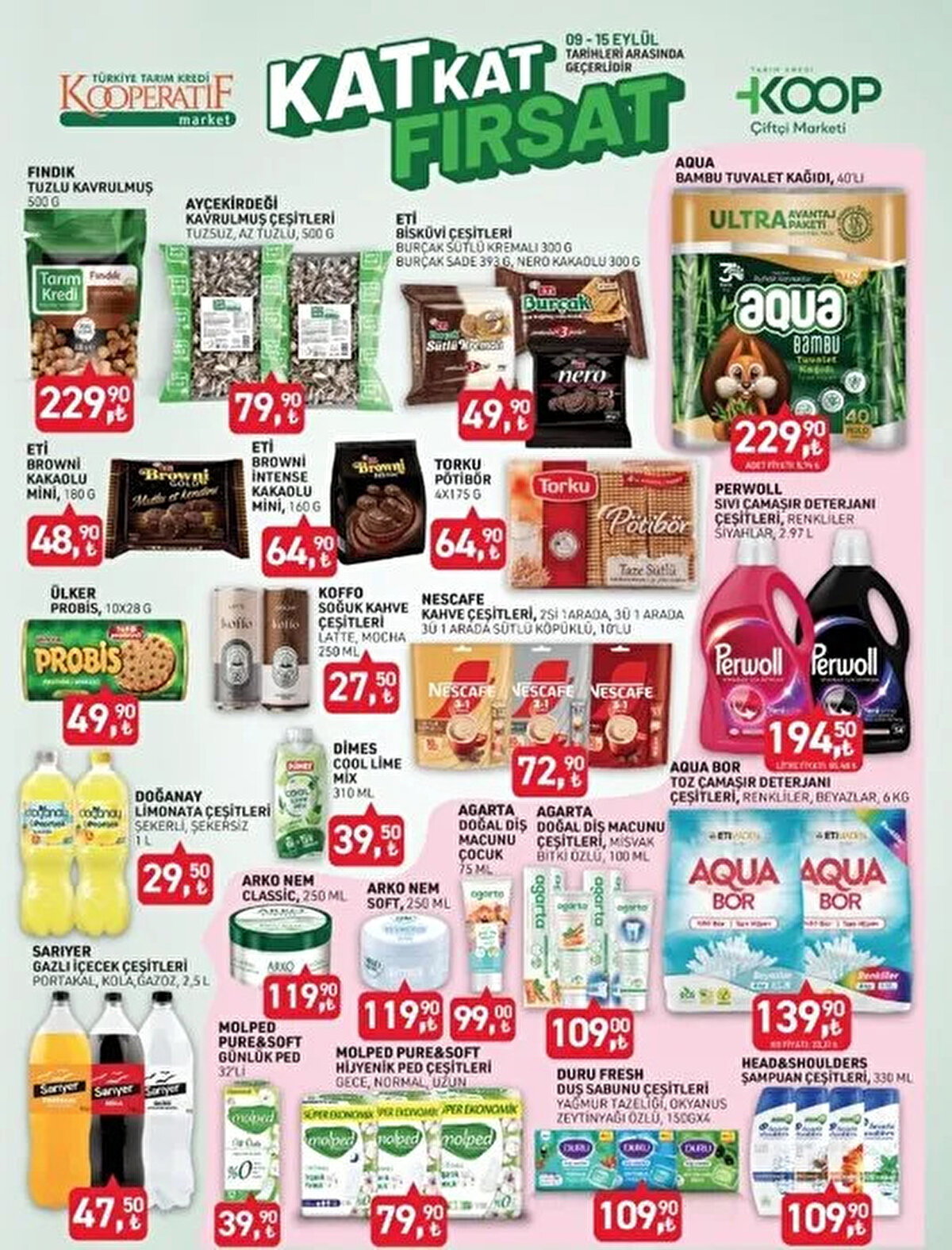 Tarım Kredi aktüel ürünler kataloğu yayımlandı! 9-15 Eylül 2025 tarihleri arasında geçerli indirimlerde çay, un, zeytinyağı, peynir, sucuk, turşu ve pirinç gibi temel ihtiyaç ürünleri alıcılarla buluşuyor.