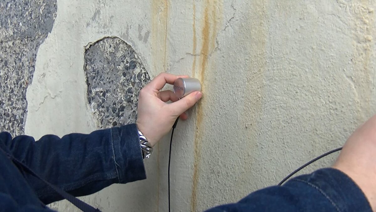 Jeofizik Yüksek Mühendisi Sarper Celasun ise, “Yerin depremi büyütmesi ve yapının deprem sırasında rezonansa girmesine bakıyorum. Maalesef burası dış etkenlere çok açık kalmış. Bunlardan dolayı içerisinde paslanmalar olmuş. Beton kalitesi düşmüş sıkıntılı bir yapı. Bir yapının depremde ne olurunu tam olarak söylemek için yerde nasıl etki edeceğini de söylemek gerek. Yerin depremde nasıl çalkalanacağına bakmamız gerek. Yapının bulunduğu yerin depremi ne kadar büyüttüğüne bakıyoruz. Yerde ölçümleri alıyoruz. Burada gördüğünüz açılmalar ve içerisindeki deniz kabukları beton kalitesinin düşük olduğunu gösteriyor. Dış etkenlere de maruz kalarak artık parçalandığını görüyoruz. Demirler yaprak gibi dökülmeye başlamış. Bu demirlerin dayanımından artık söz edilemez. Bu yapı açıkçası çok sağlıksız mutlaka incelenmesi yeniden yapılması gerek. Bu ultrason cihazı ile duvarlara zarar vermeden betonun niteliğini ölçeceğiz. Betonun içerisine yüksek frekanslı ses dalgası göndererek betona zarar vermeden ölçmüş oluyoruz. Beton içerisindeki sismik yüksek frekanslı ses dalgalarının varış zamanlarına bakıyoruz. Ne kadar çabuk ses dalgası alıcıdan vericiye hızlı giderse beton kalitesi o kadar yüksek oluyor. Burada zamanı okuyoruz. Şu an beton kalitesi oldukça düşük. Sadece yapı değil yer de bu konuda çok önemli. İkisinin birden değerlendirilmesi lazım ama sağlıksız yapılar bunun gibi içerisinde deniz kumu kabuğu olan yapılar zaten riskli" şeklinde konuştu.