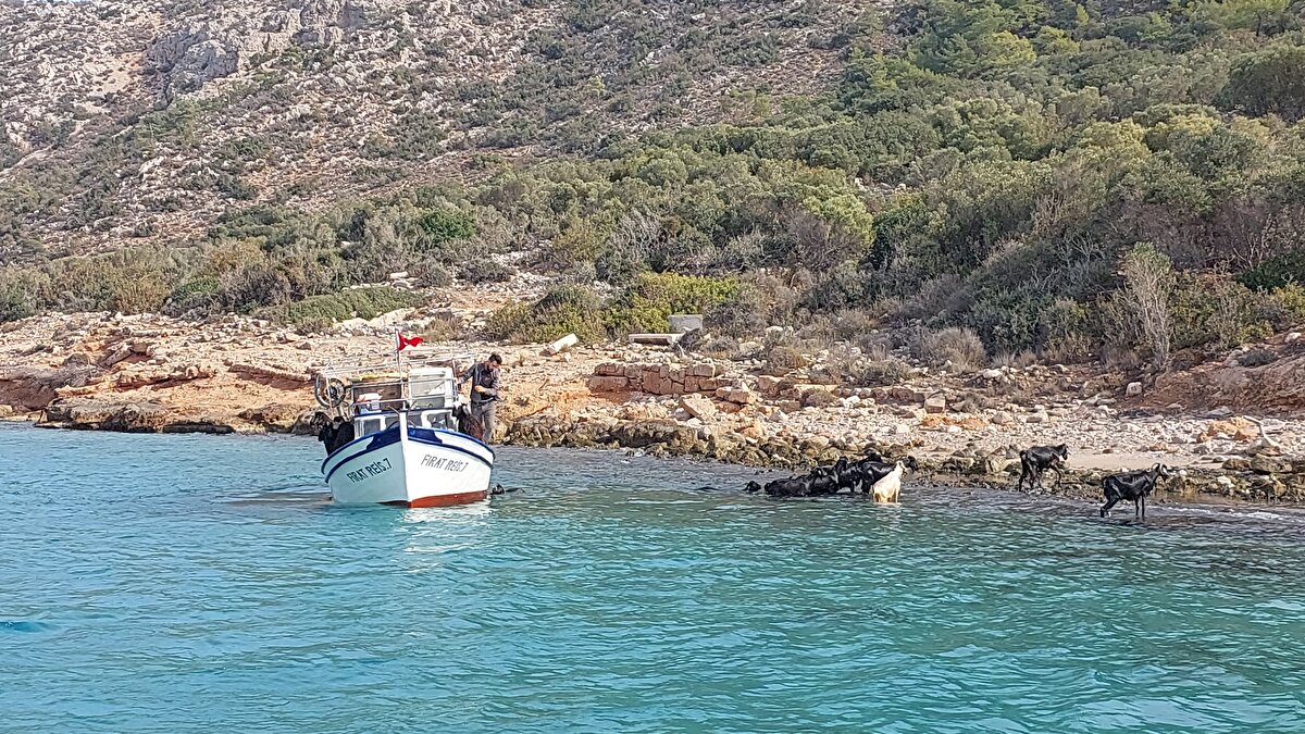 Bir süre adaya bırakılan keçilere, zaman zaman su da götürülüyor.