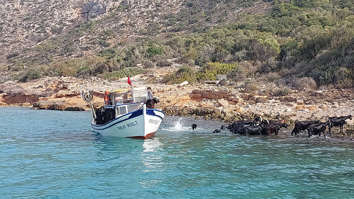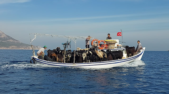 Mersin'in Silifke ilçesinde Sarıkeçili Yörükleri, keçilerini, otlatmak için teknelerle Dana Adası'na taşıdı. O anlar cep telefonuyla görüntülendi.